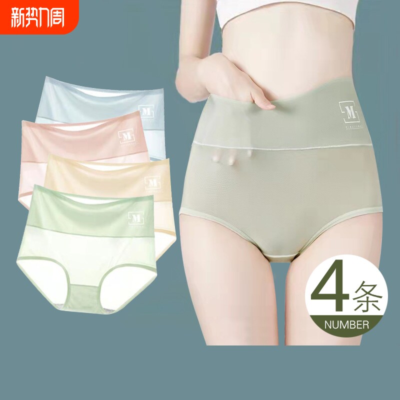 冰丝内裤女高腰女士纯棉裆收腹超薄透气抑菌大码少女三角短裤夏季