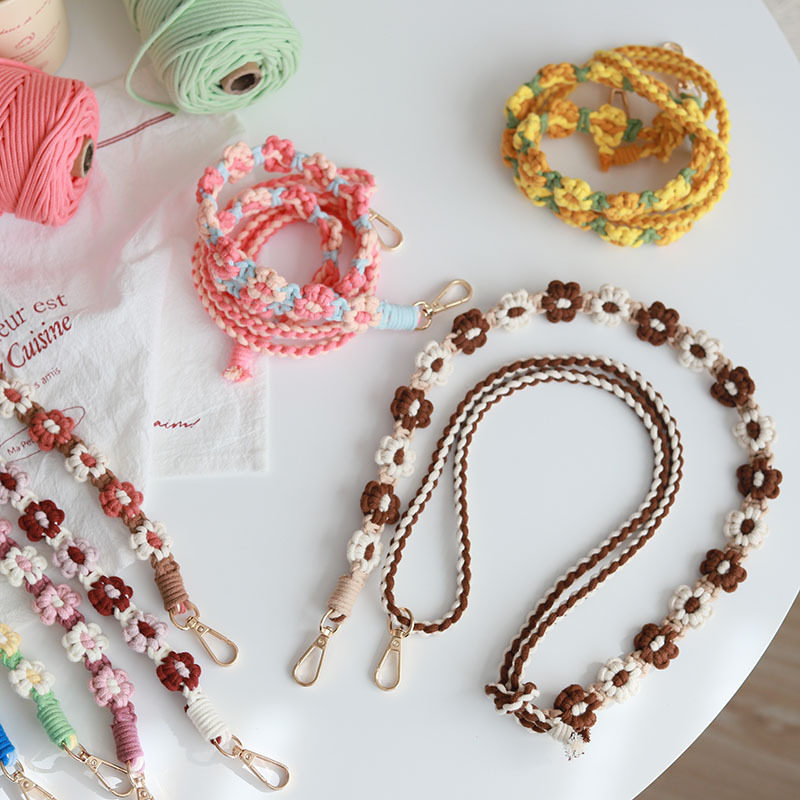 波西米亚手工编织手机绳斜挎可调节斜跨花朵菊花小雏菊电话挂绳