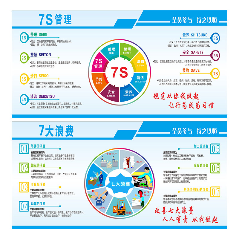 企业7S管理宣传栏海报公司车间生产管理看板墙贴5S 6S 7s挂图展板精益生产管理知识宣传栏8S标语