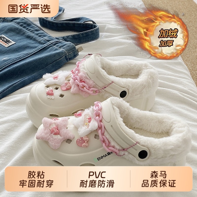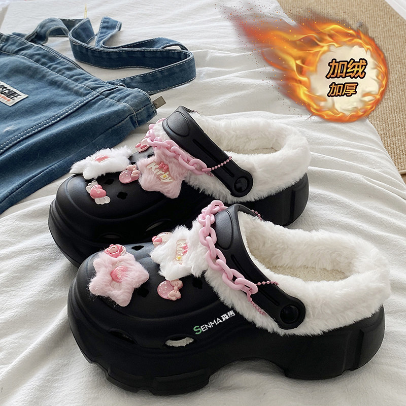 三福洞洞鞋增高厚底可爱时尚加绒加厚外穿拖鞋秋冬女款2025新款