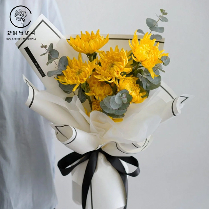 清明防水包装纸黑边边框鲜花花束祭祖祭祀扫墓花店用品菊花包花纸