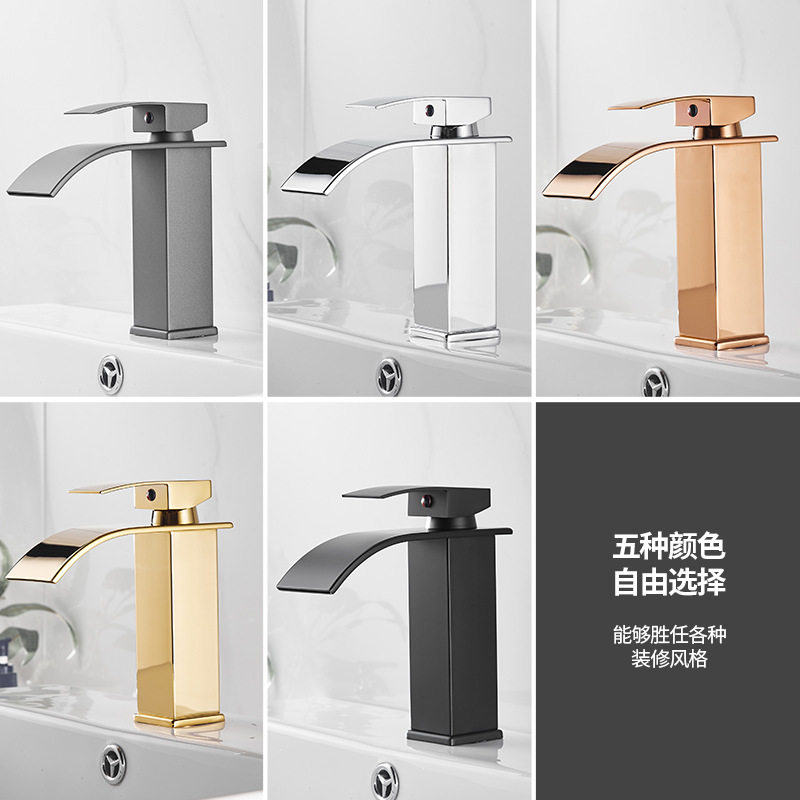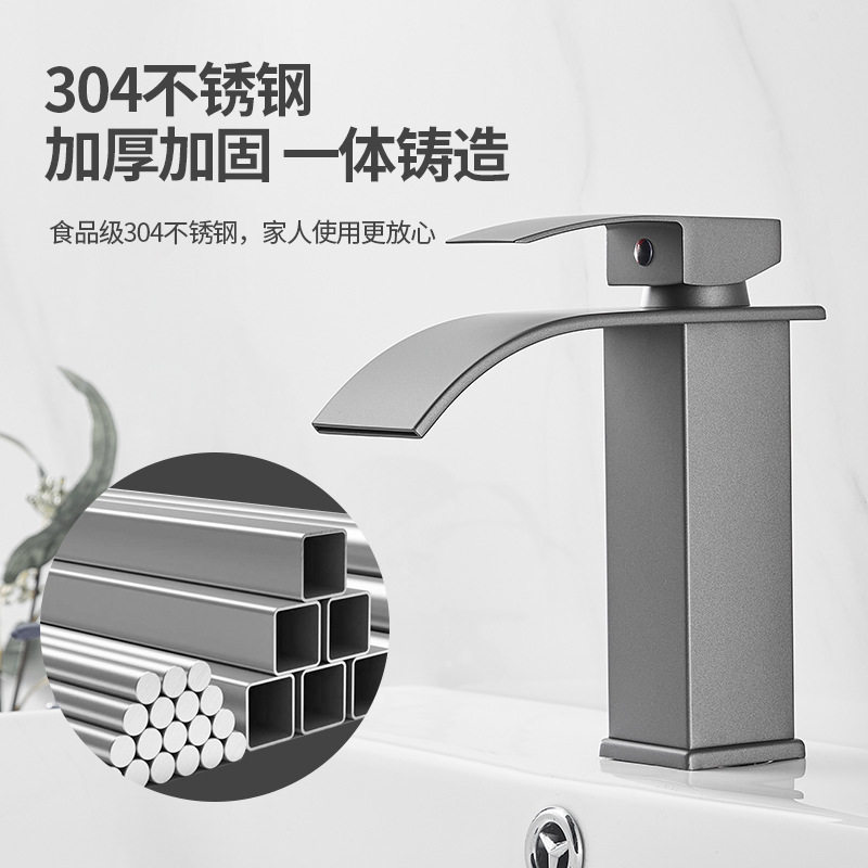 直销瀑布水龙头冷热台上盆洗脸面盆卫生间浴室柜单孔枪灰高龙头