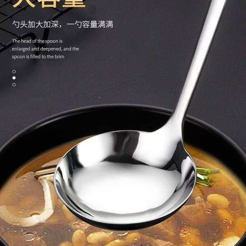 304不锈钢勺子家用长柄火锅勺防烫盛汤勺漏勺套装大号款1加厚加长