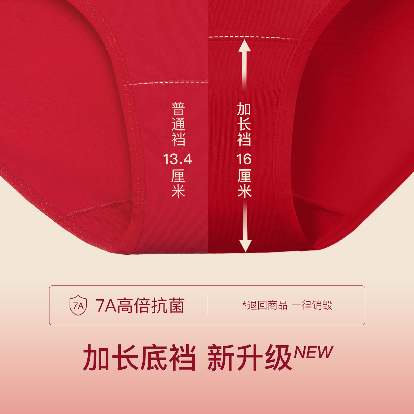 ubras轻收腹中高腰纯棉内裤女新年送礼红色透气加长底裆三角裤