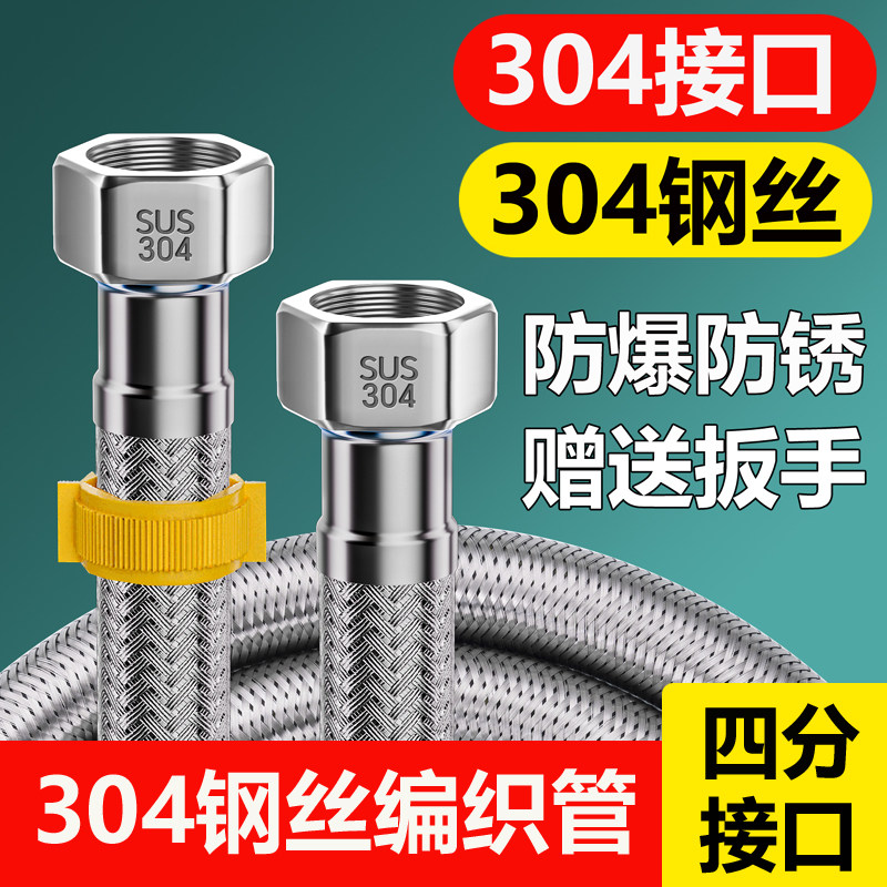 水龙头软管冷热水器连接管马桶进水管4分高压防爆304不锈钢编织管