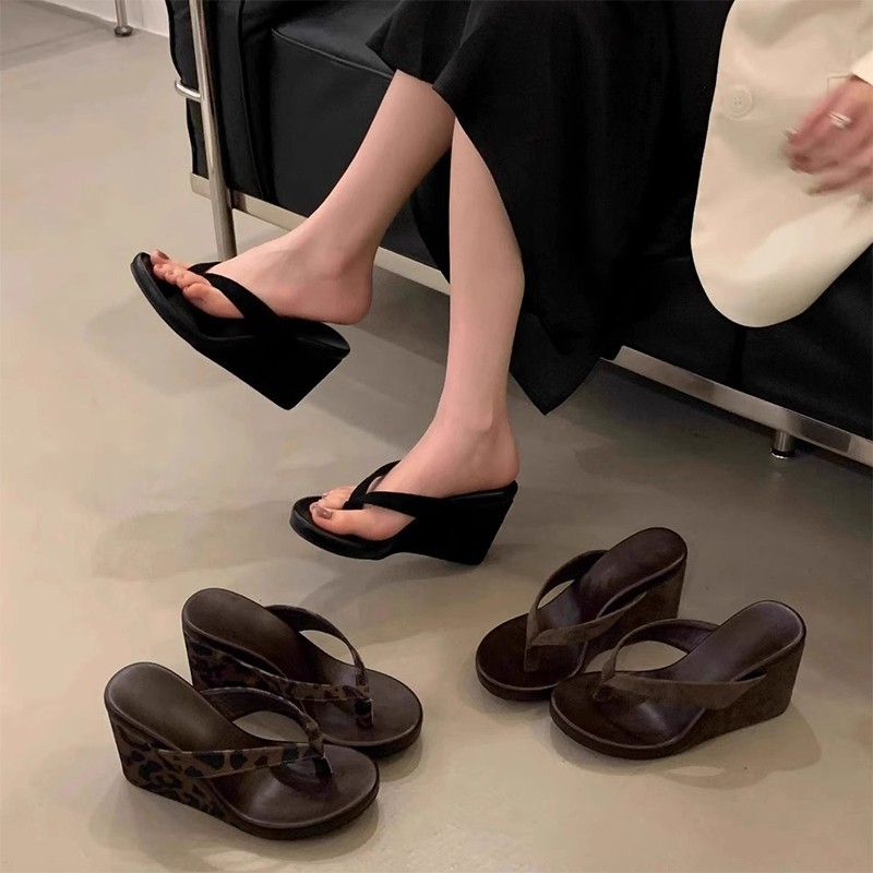 增高8CM圆头坡跟夹脚趾人字拖鞋女夏季外穿新款沙滩高跟凉拖鞋子