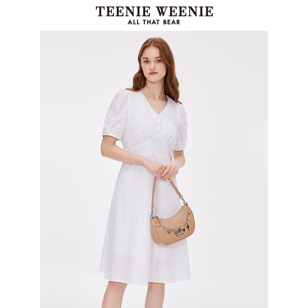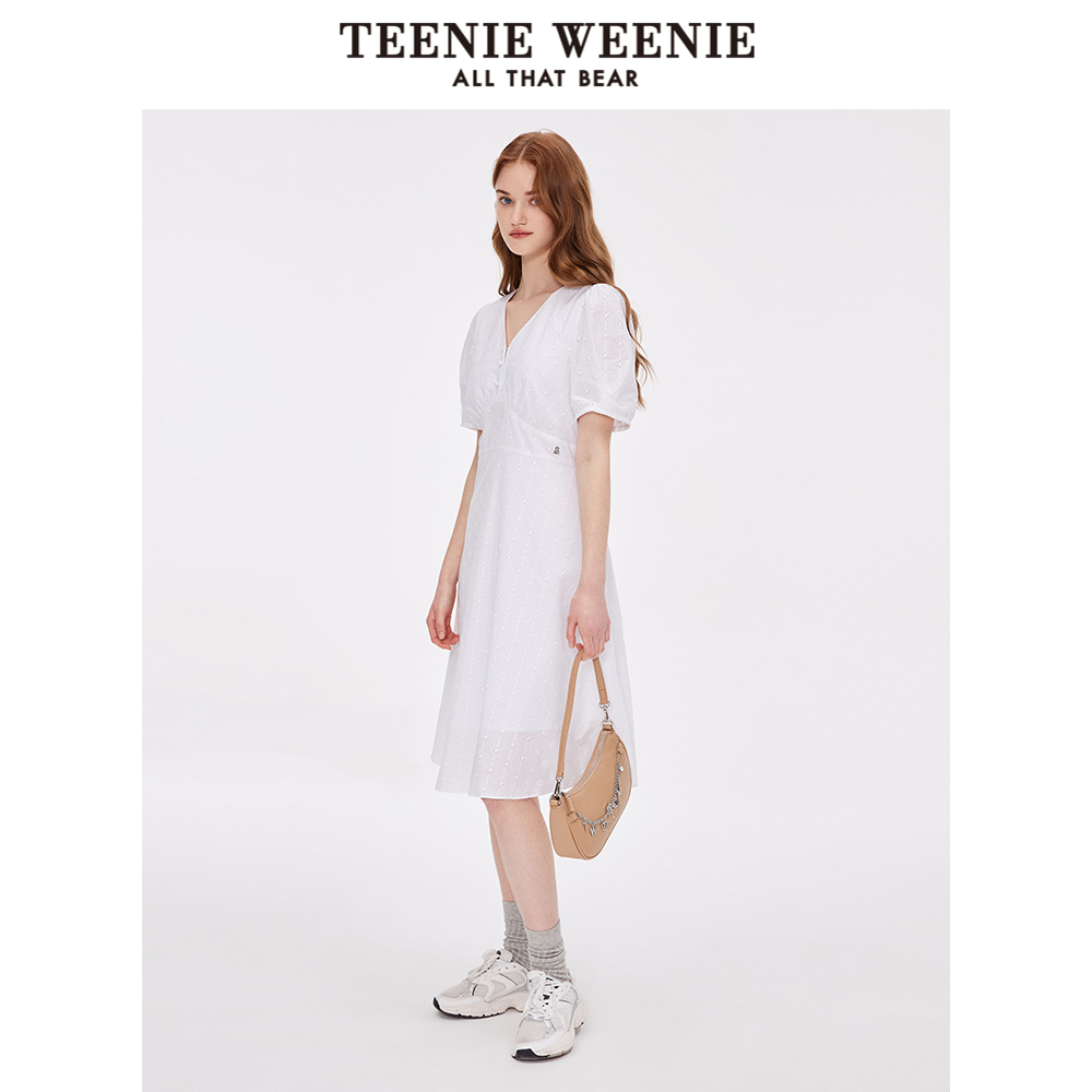 TeenieWeenie小熊奥莱浪漫清新连衣裙V领简洁气质裙子女夏季