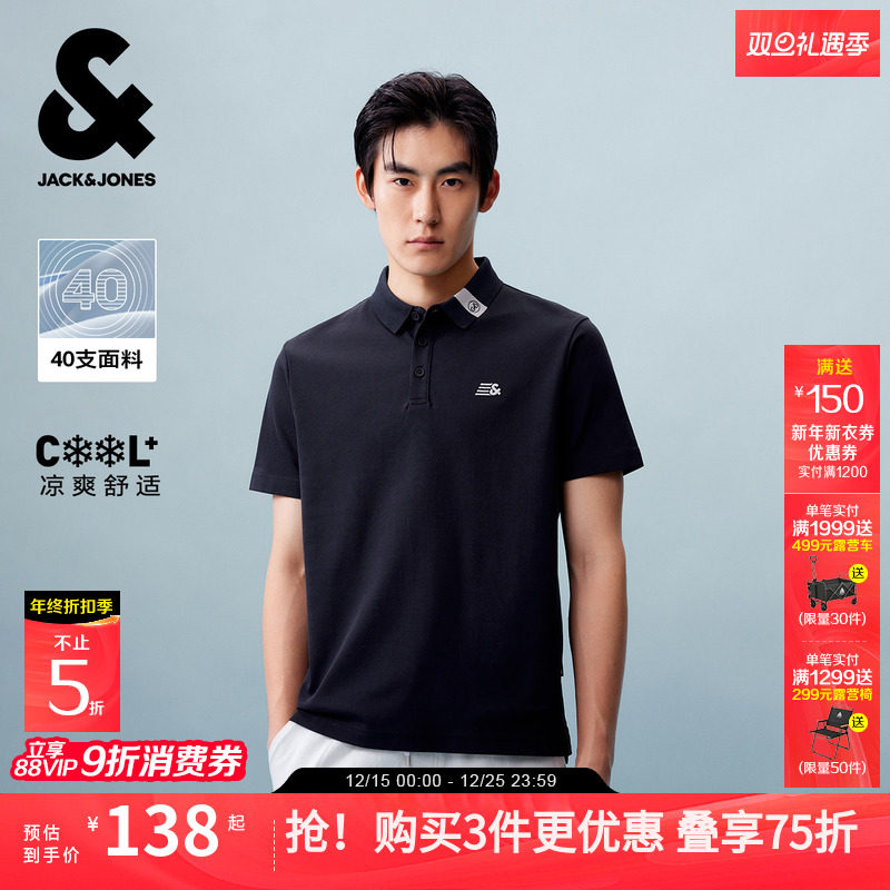 凉感 杰克琼斯秋季翻领季男士潮polo衫衬衫T恤短袖撞色男装织带领