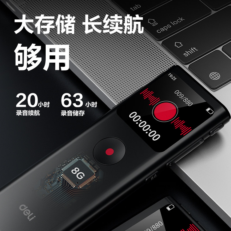 得力长续航智能录音笔无损音质降噪技术加密保护自动保存播放器