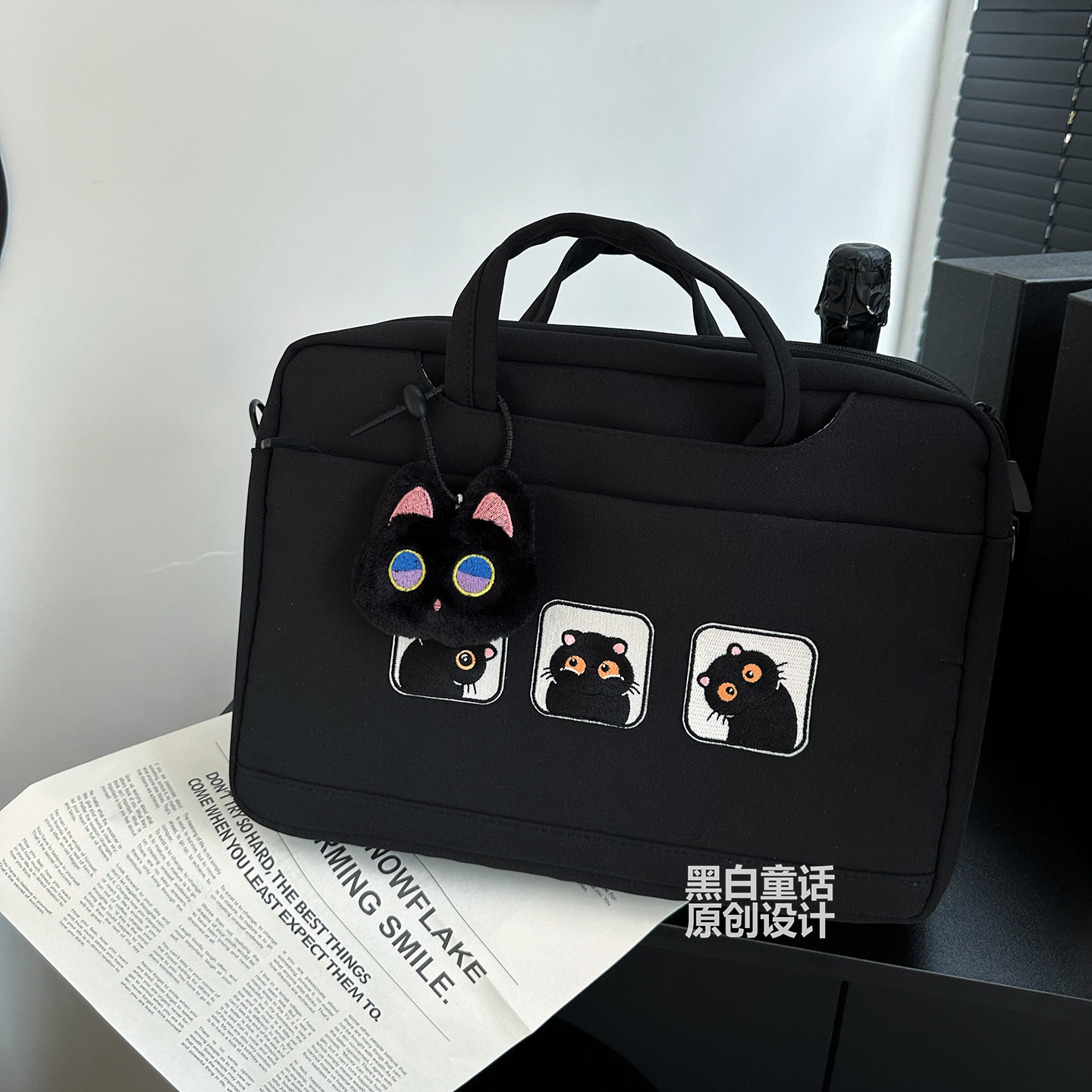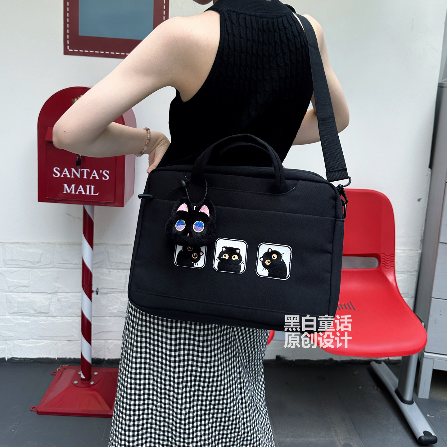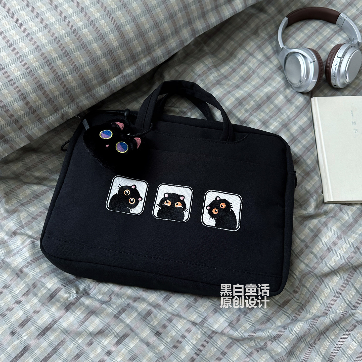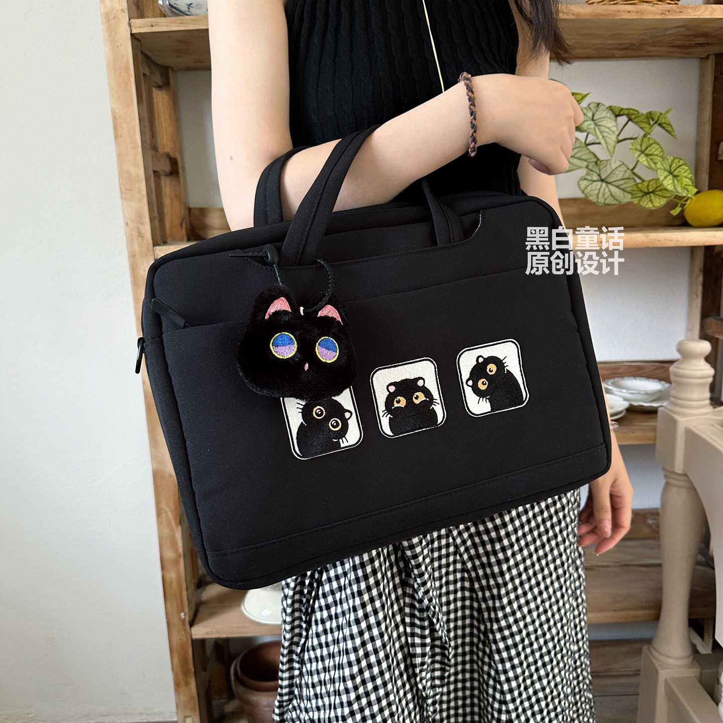 高颜值可爱猫头挂件贴布笔记本电脑包16英寸女高级感小众设计大容量收纳包14寸适用联想拯救者y7000P苹果华为