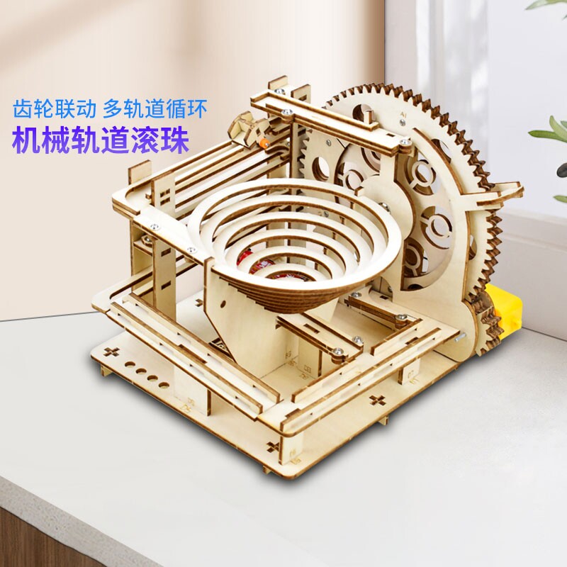 木质拼图机械手工DIY拼装益智玩具儿童男女生日礼物轨道滚珠立体