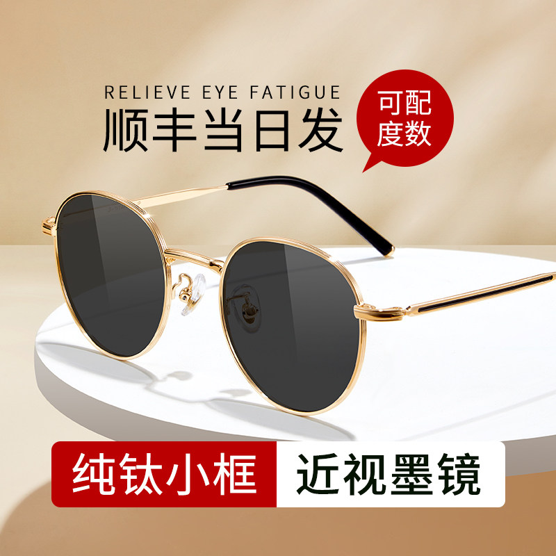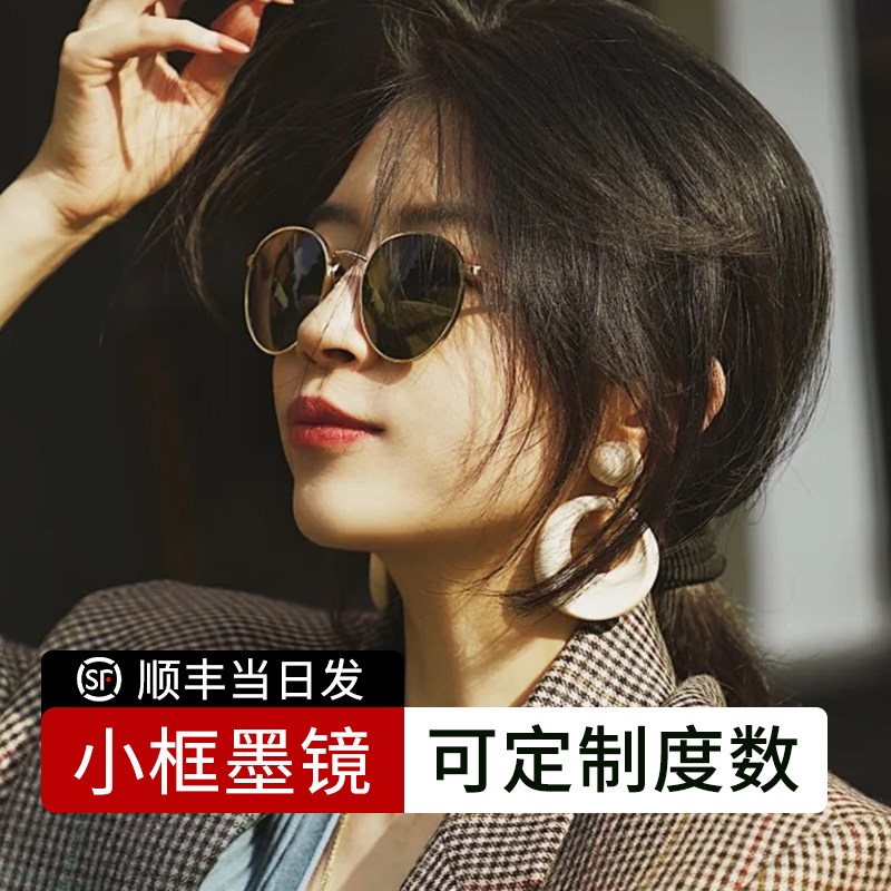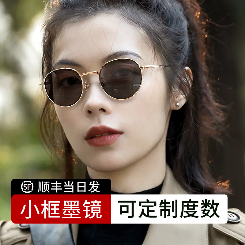 近视墨镜可配带度数女款防晒防紫外线太阳镜小框复古港风纯钛眼镜
