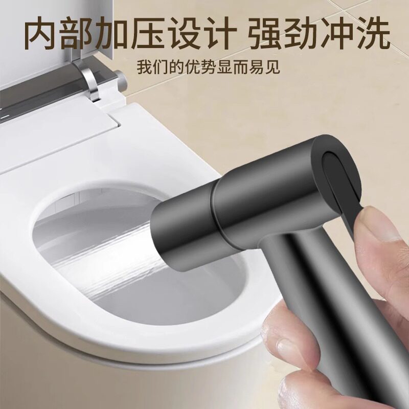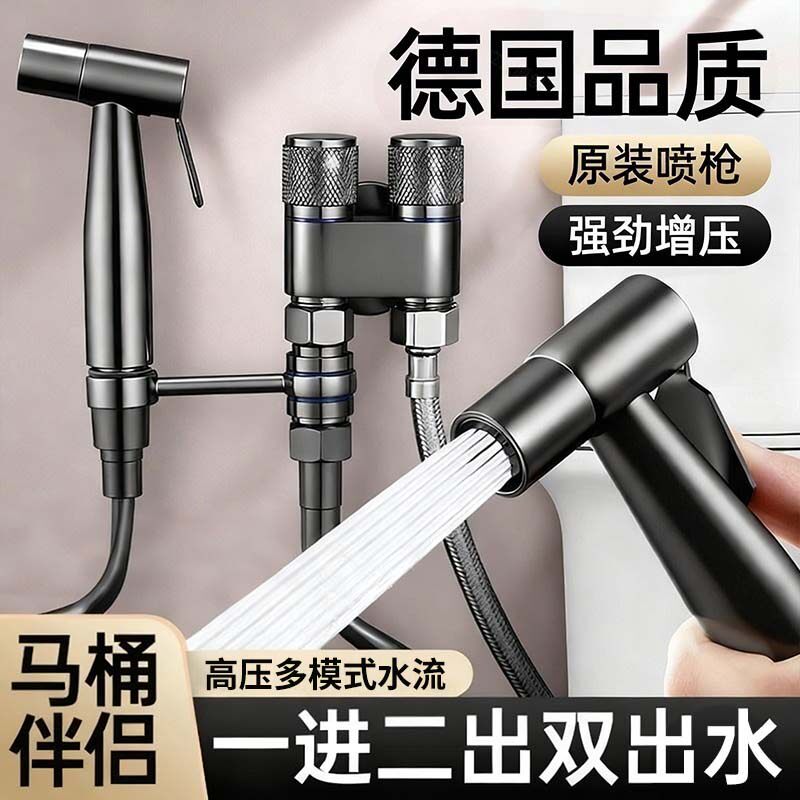 马桶伴侣冲洗喷枪一进二出角阀带卫生间厕所高压水枪增压喷头全铜