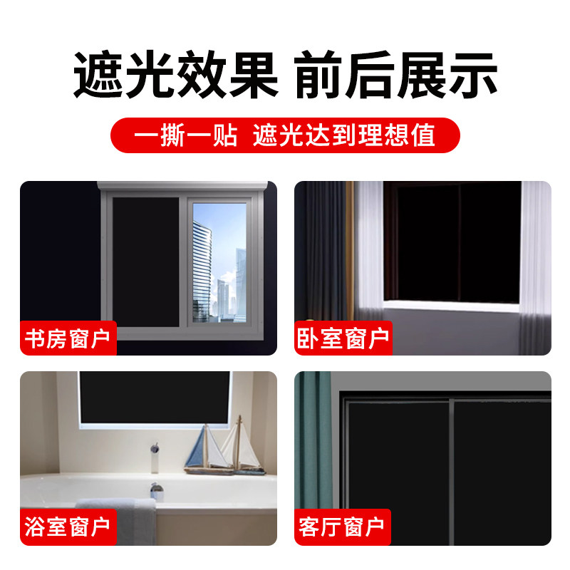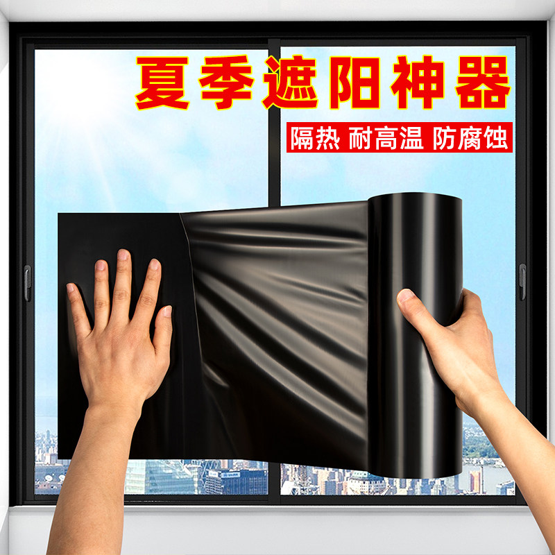 防晒胶带黑色遮光高粘度强力黑胶布封窗户阳台卧室玻璃贴纸遮光神器管道防晒隔热膜LED灯全挡光胶布不透光膜