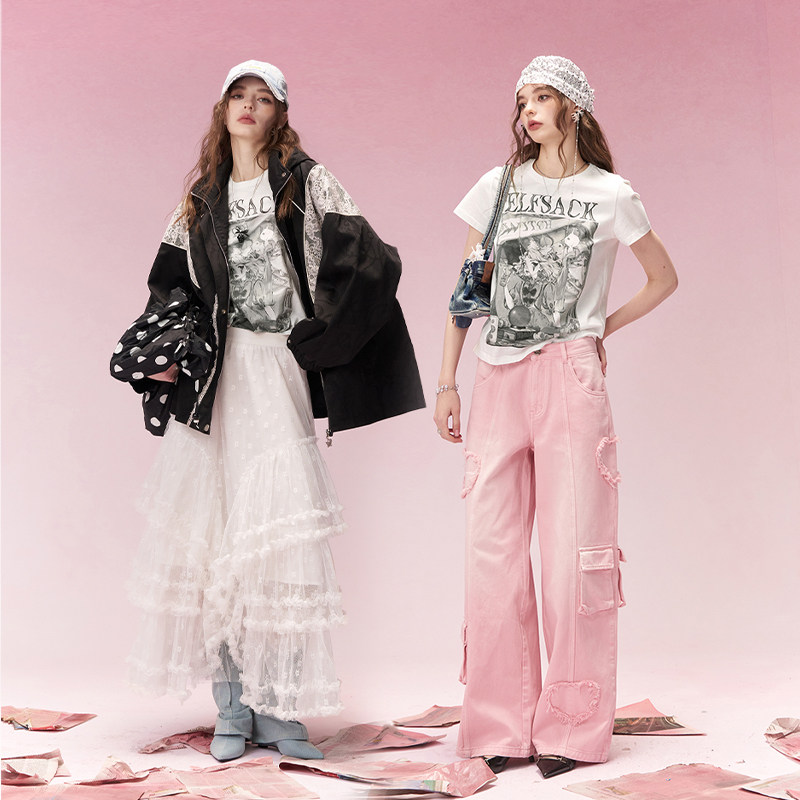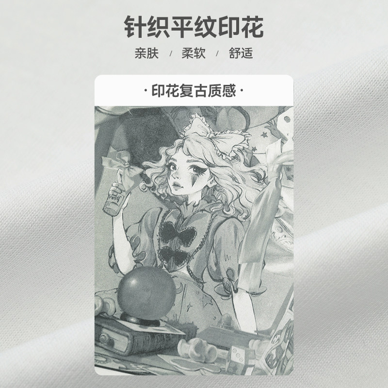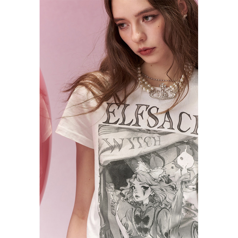 妖精的口袋美式白色印花正肩短袖t恤女2026早春新款小众修身上衣