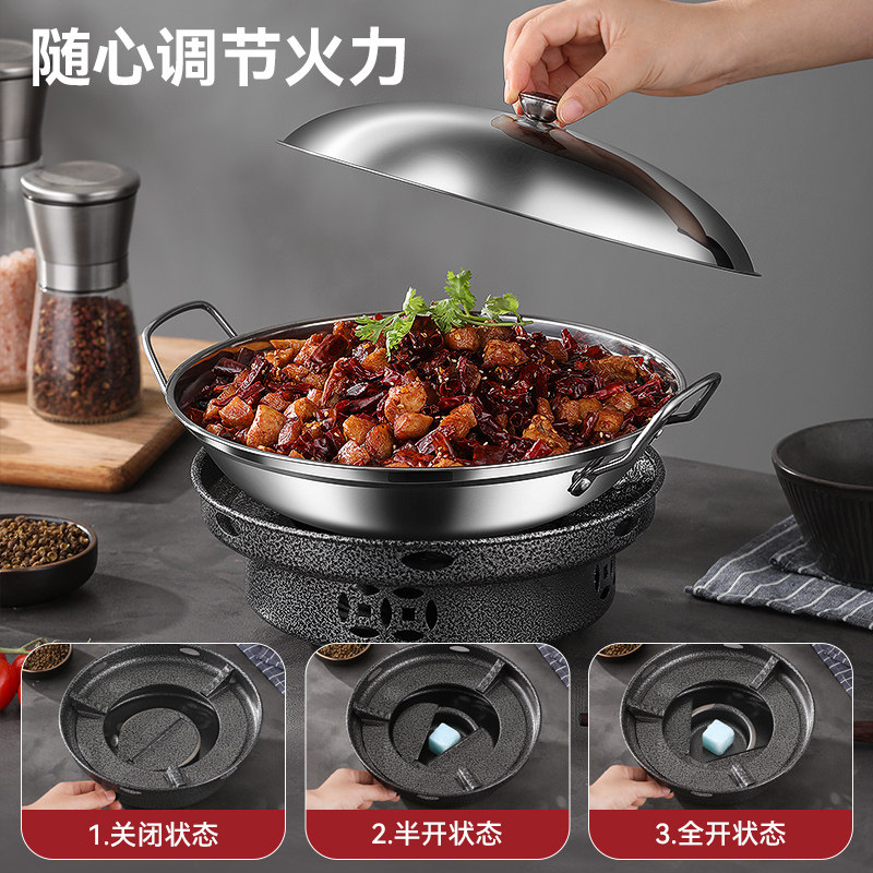 固体酒精炉小火锅家用炉子专用锅干锅锅具一套酒店锅仔不锈钢底座