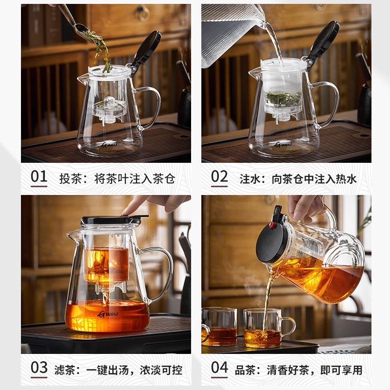加厚耐热玻璃飘逸杯泡茶壶耐高温一键过滤茶水分离家用冲茶器茶具