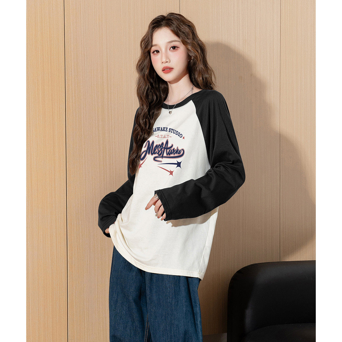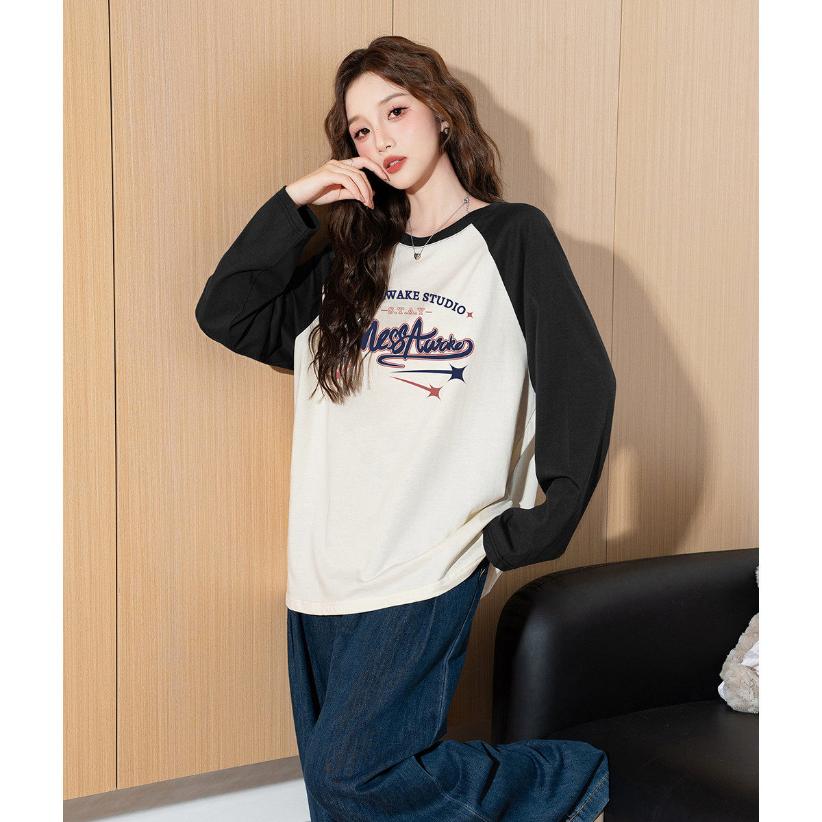 tonlion/唐狮春夏季T恤女装新款上衣长袖T恤印花宽松型棉质百搭