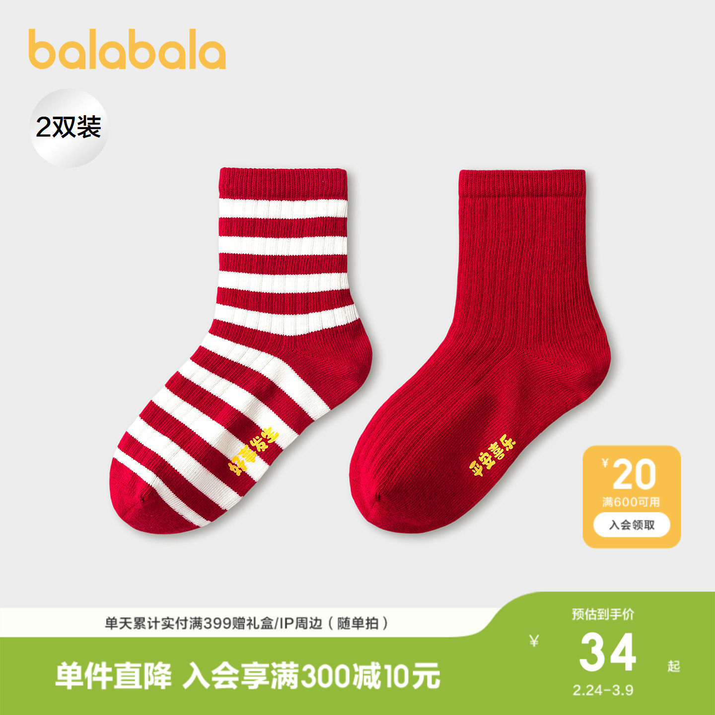 【商场同款】巴拉巴拉儿童袜子春秋男童棉袜中筒袜提花红色拜年服