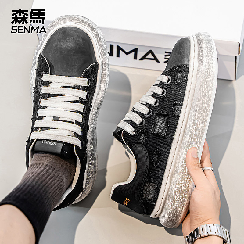 MRA碎冰美式小黑鞋板鞋男鞋2025新款厚底运动休闲鞋裂纹百搭板鞋