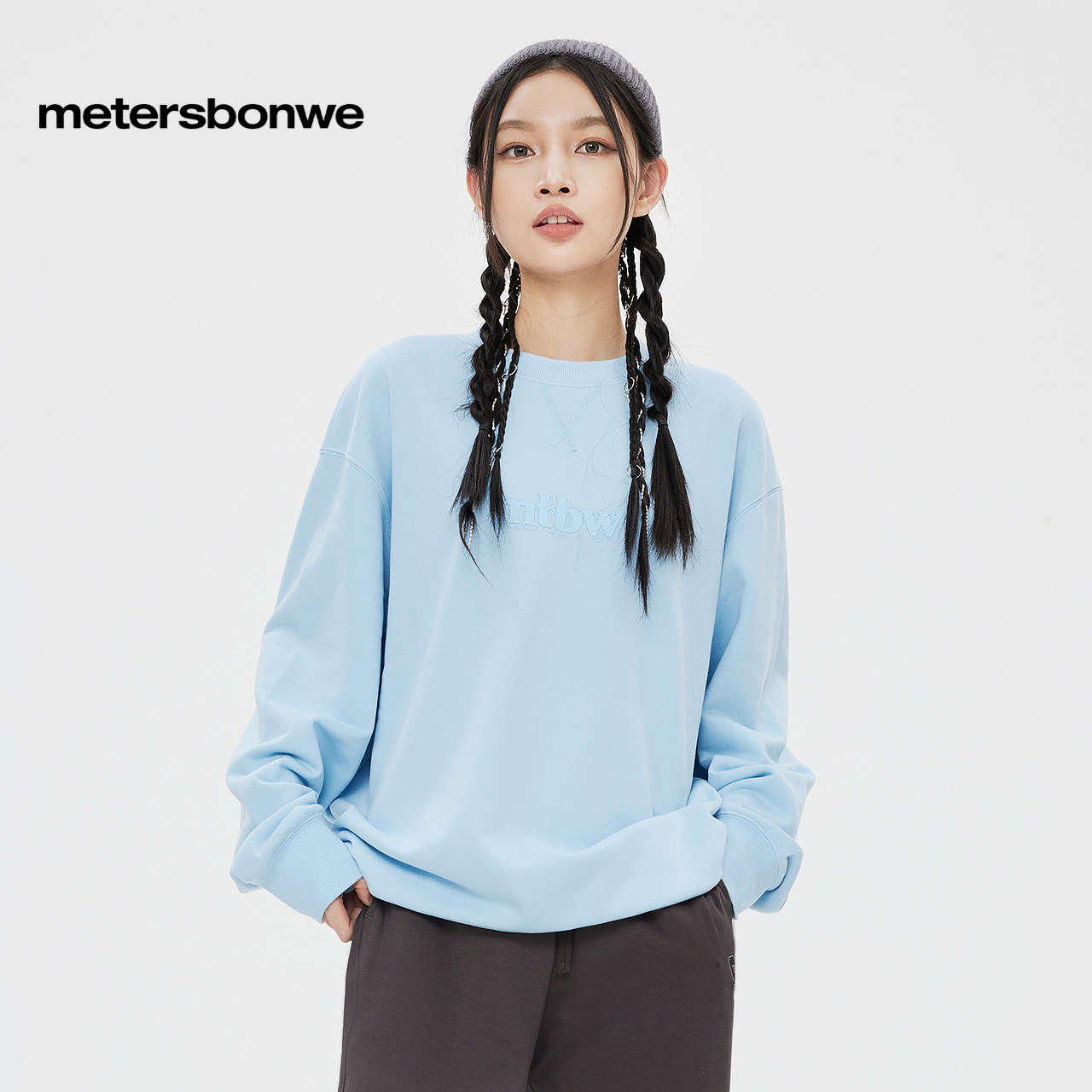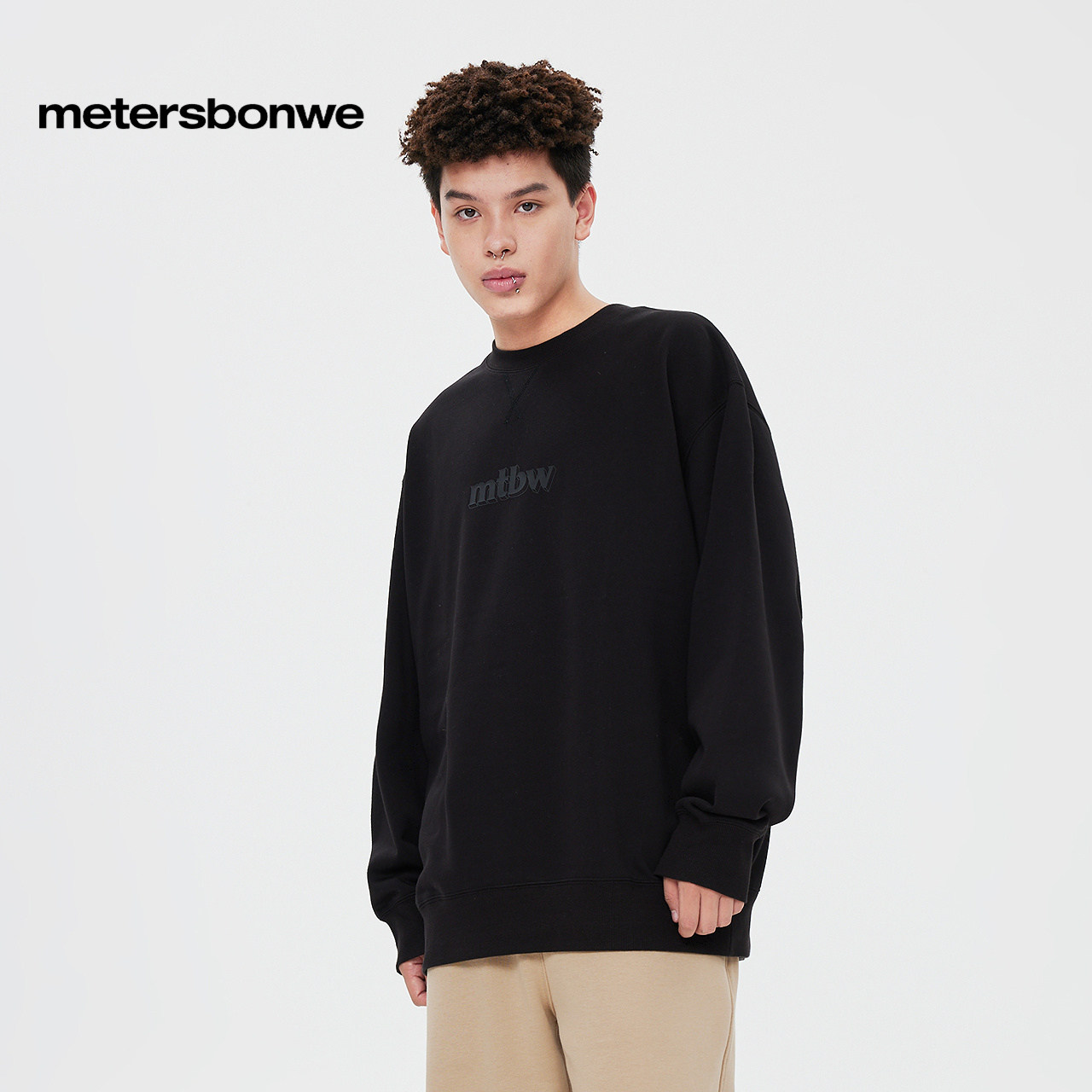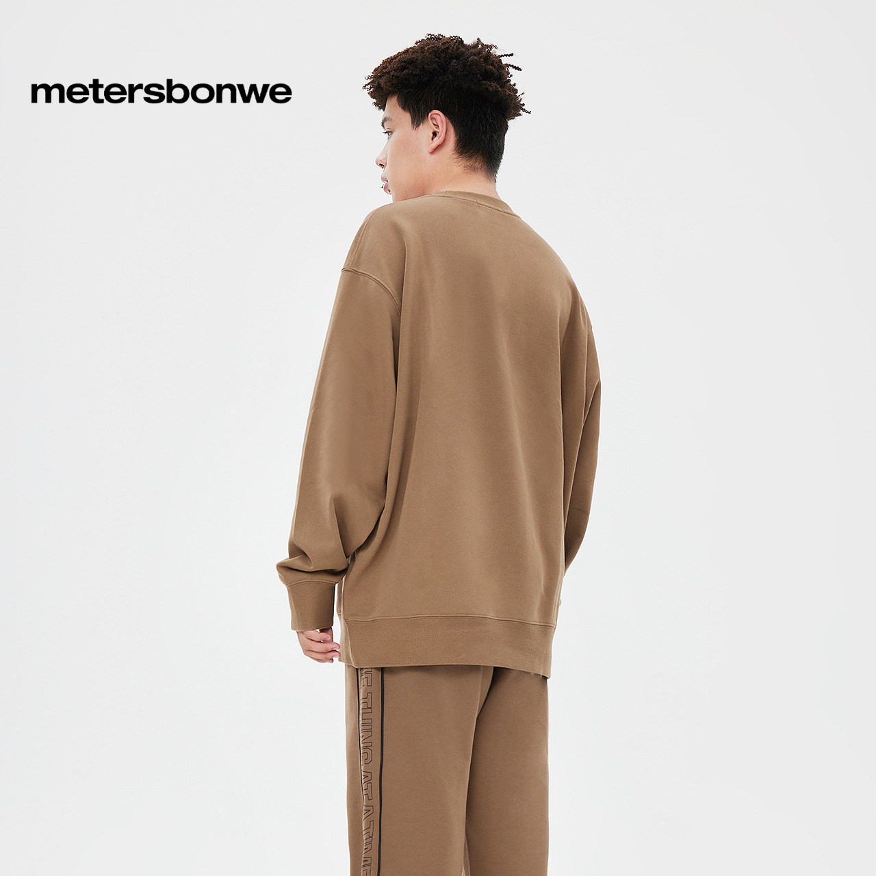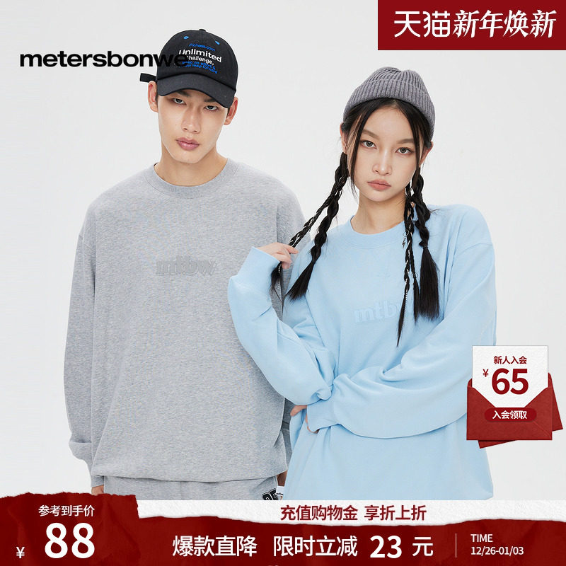 美特斯邦威卫衣男秋季新款情侣时尚纯色圆领宽松印花针织套头衫