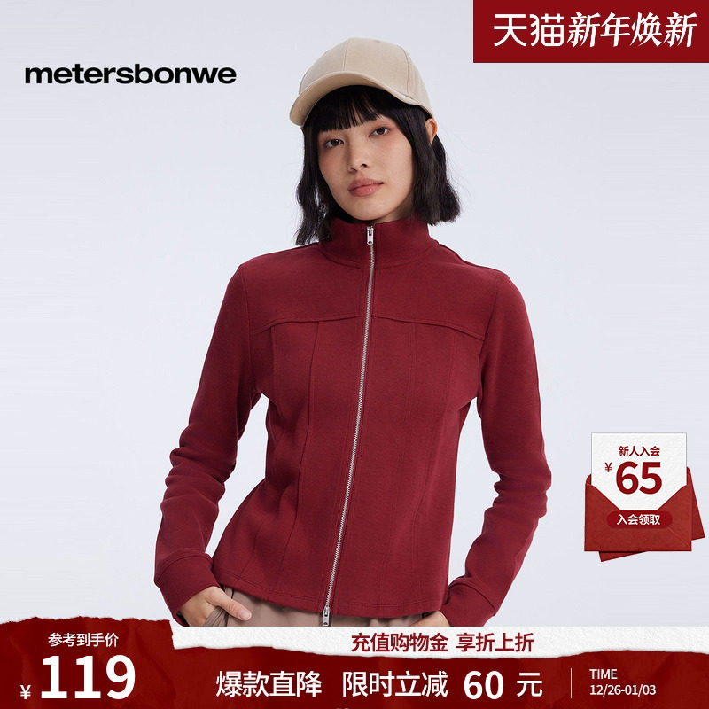 [商场同款]美特斯邦威卫衣女25秋冬长袖开衫纯色简约显瘦修身开衫