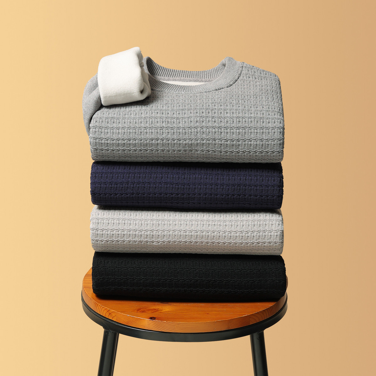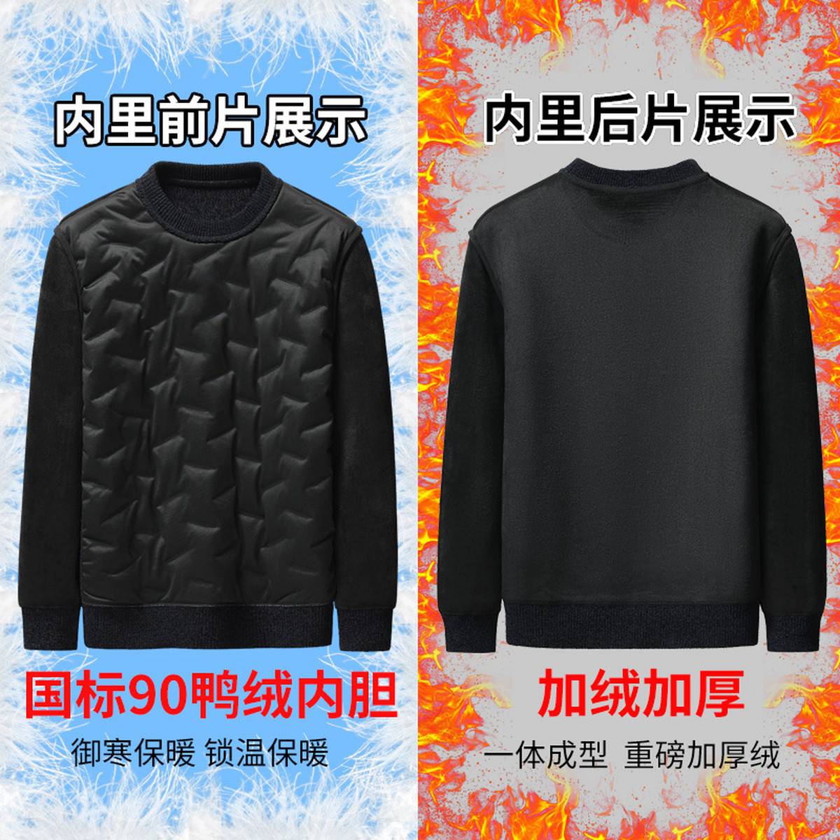 雪中飞2025冬新款男士圆领羽绒卫衣华夫格纯色商务休闲时尚保暖