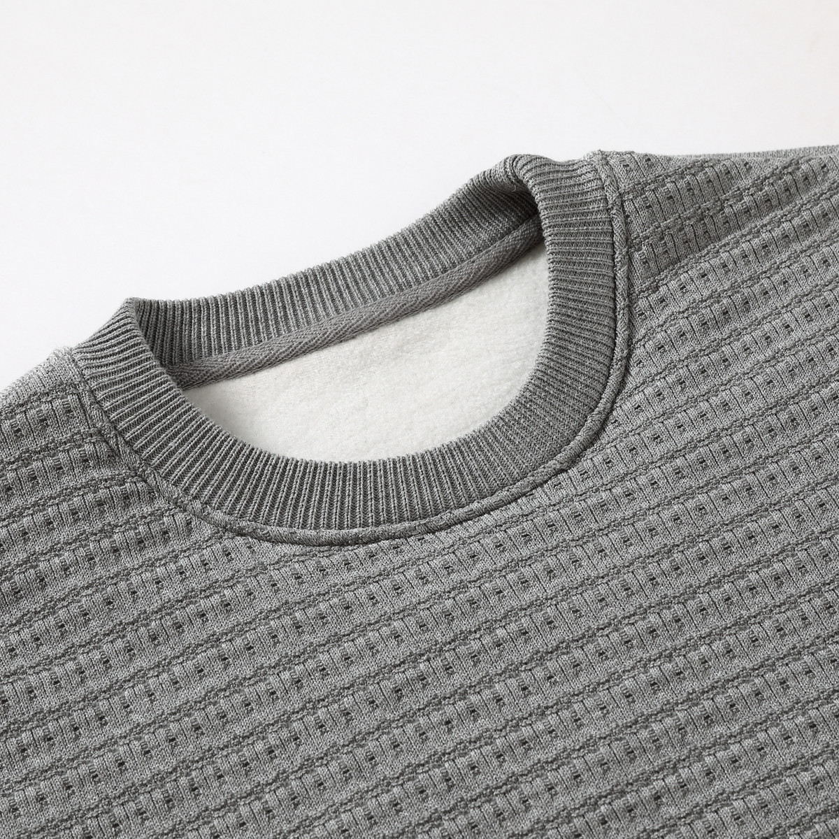 鸭鸭羊毛蚕丝华夫格圆领卫衣男女同款休闲华夫格圆领套头卫衣外套