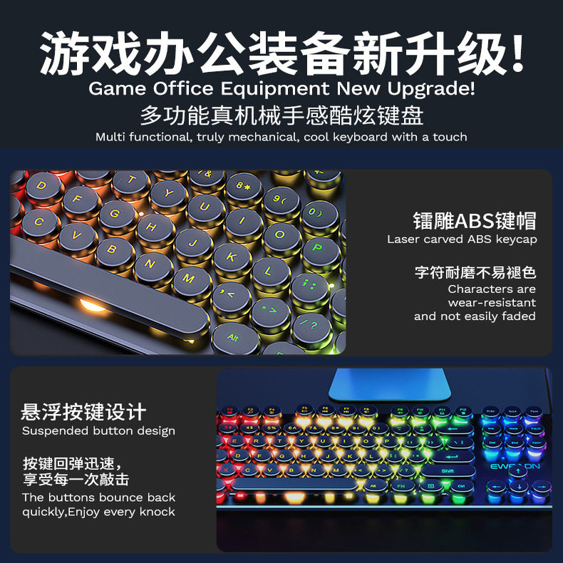 电竞键鼠电脑台式游戏办公女生专用静音键盘机械鼠标打字通用套装