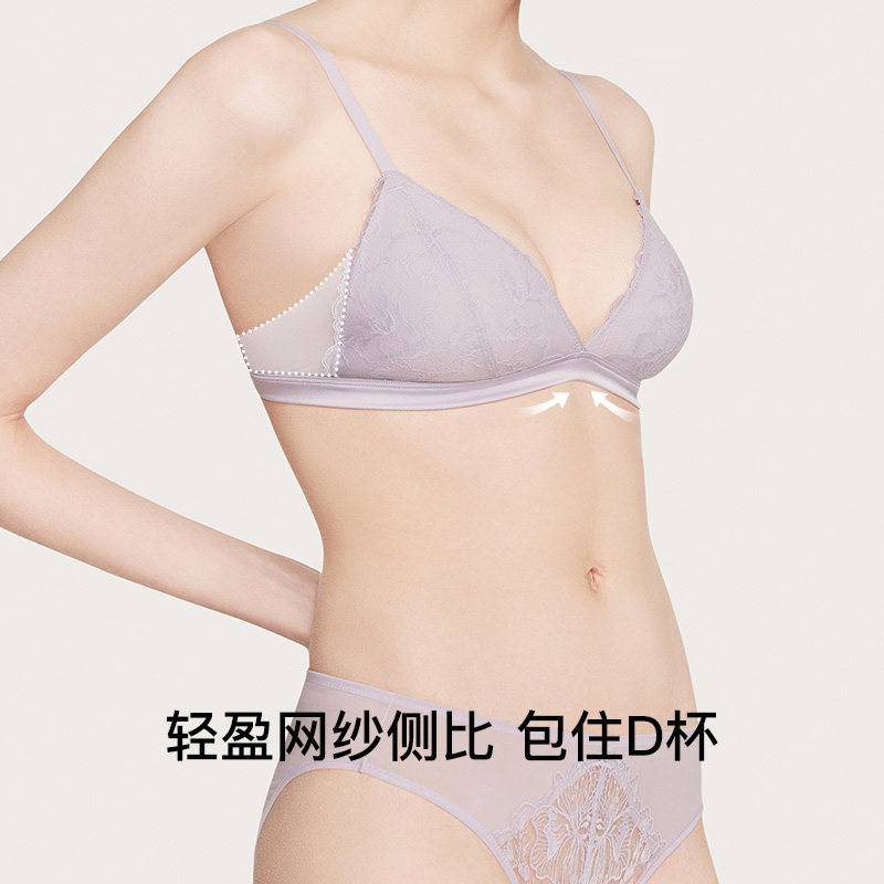 ubras深V三角杯内衣女性感蕾丝超薄舒适隐形美背透气大杯文胸罩
