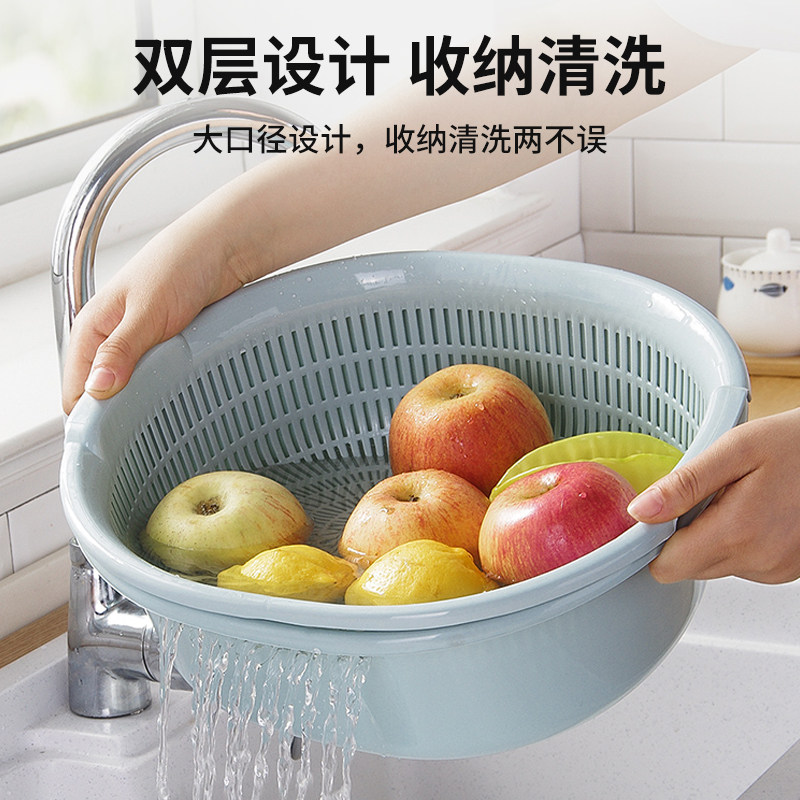 厨房双层塑料滴水篮洗菜盆洗水果篮多用淘米器洗菜篮沥水篮滤水筛