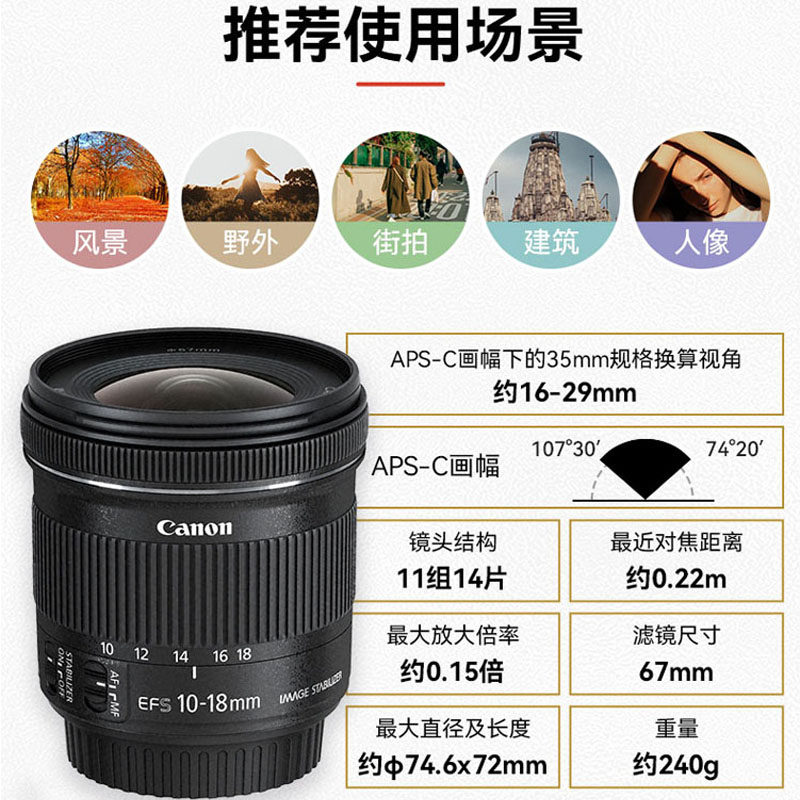 全新佳能EF-S 10-18mm f/4.5-5.6 IS STM超广角变焦单反防抖镜头