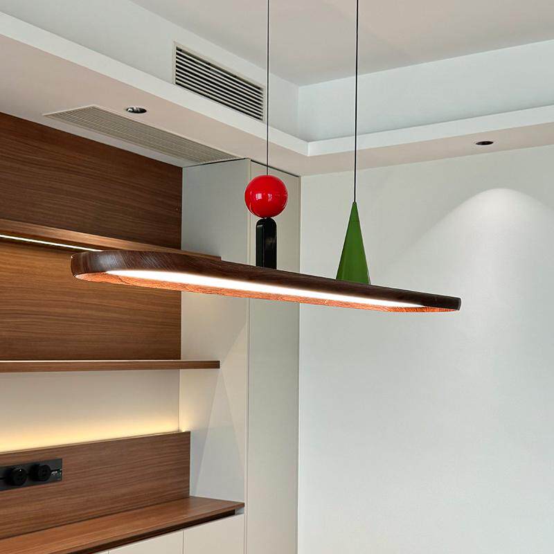长虹中式中古极简椭圆餐厅吊灯原木风长条灯创意胡桃木色回旋灯