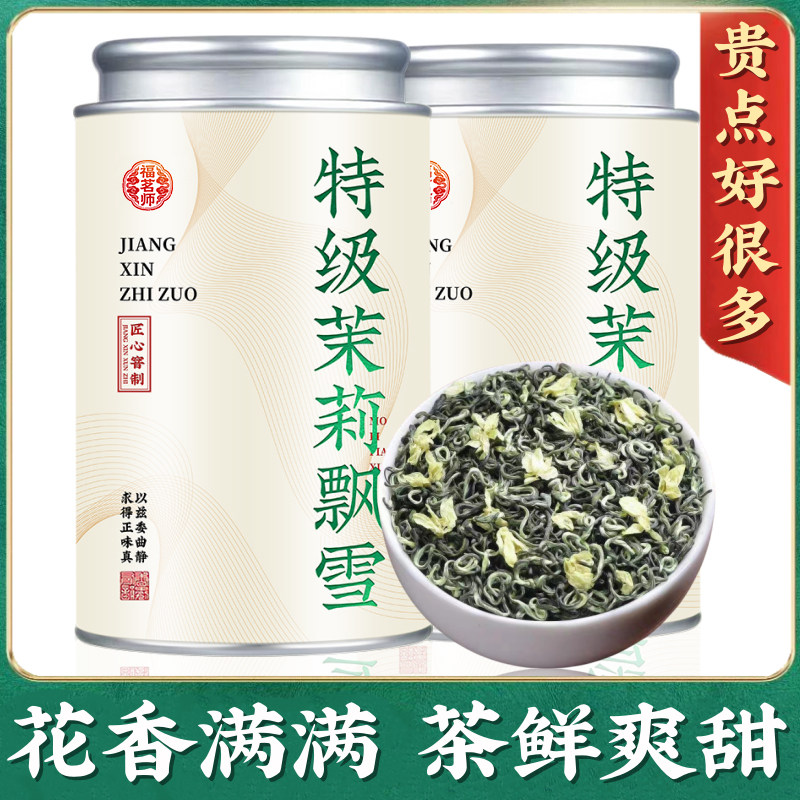 茉莉花茶特级浓香型绿茶新茶叶茉莉飘雪茉莉花茶冷泡绿茶罐装500g