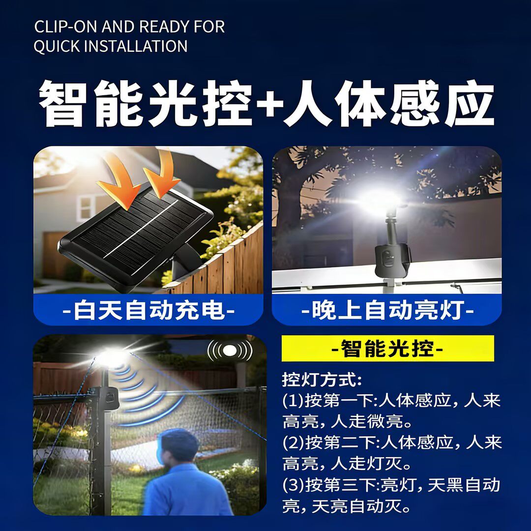 2025新款太阳能户外灯家用庭院灯室外防水感应夹子灯阳台照明壁灯