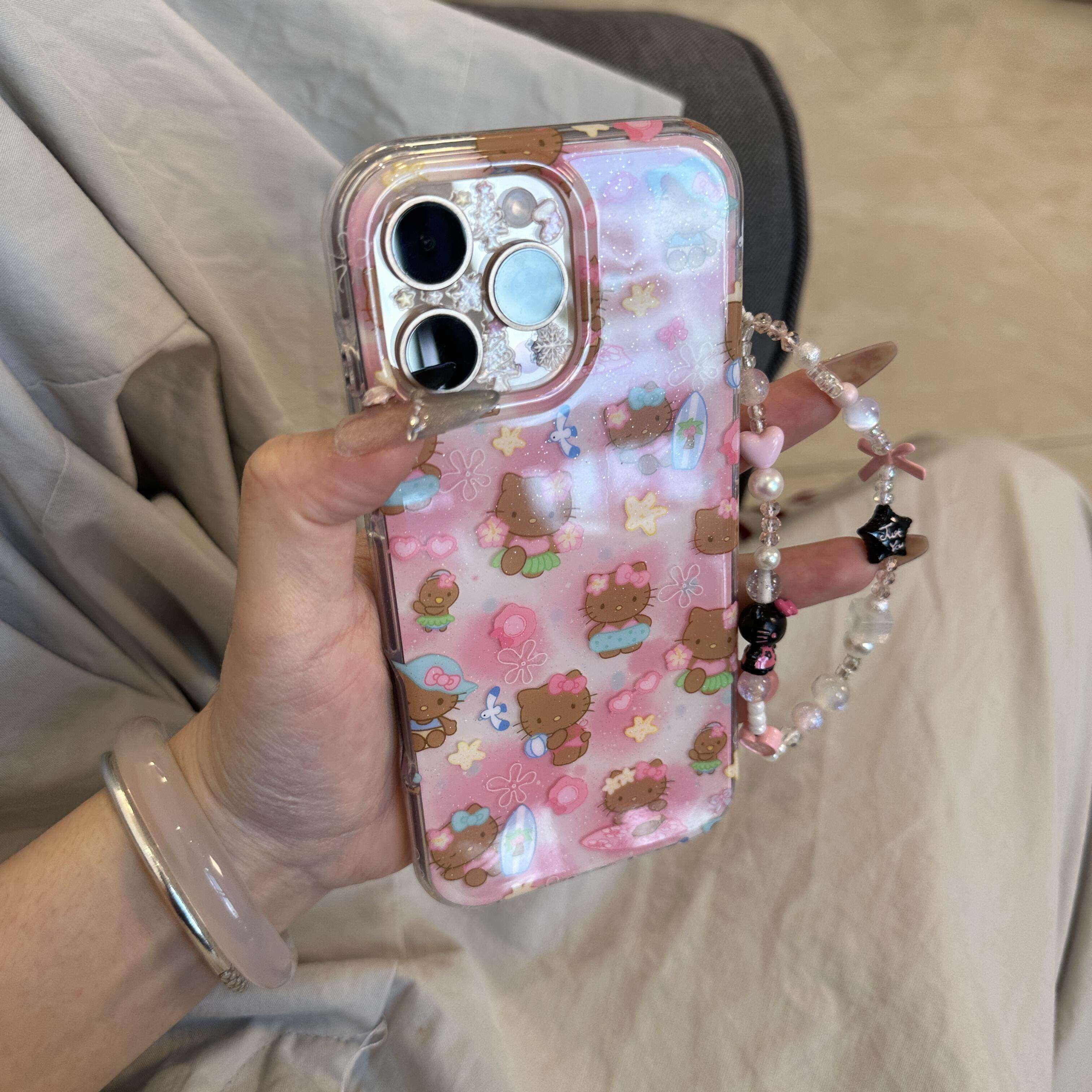 可爱粉晕染夏威夷舞黑皮KT猫链条手机壳适用苹果16promax新款IMD双层15pro全包14promax保护套14/13防摔16女
