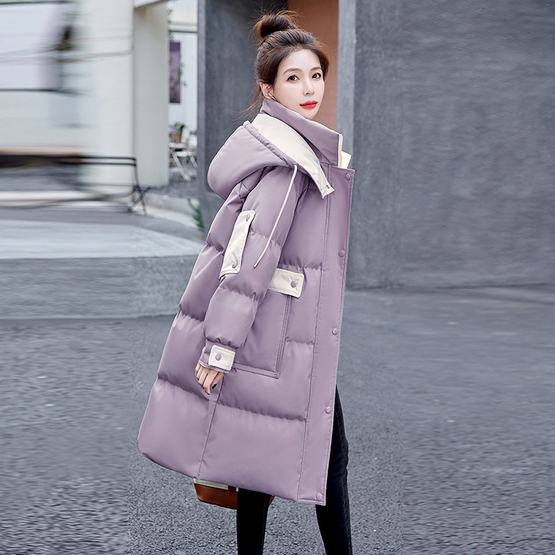 紫色羽绒服女冬季2025年新款中长款欧货加厚保暖连帽大袄过膝黑色