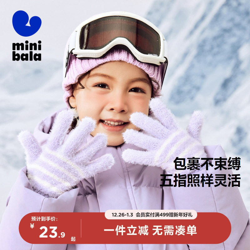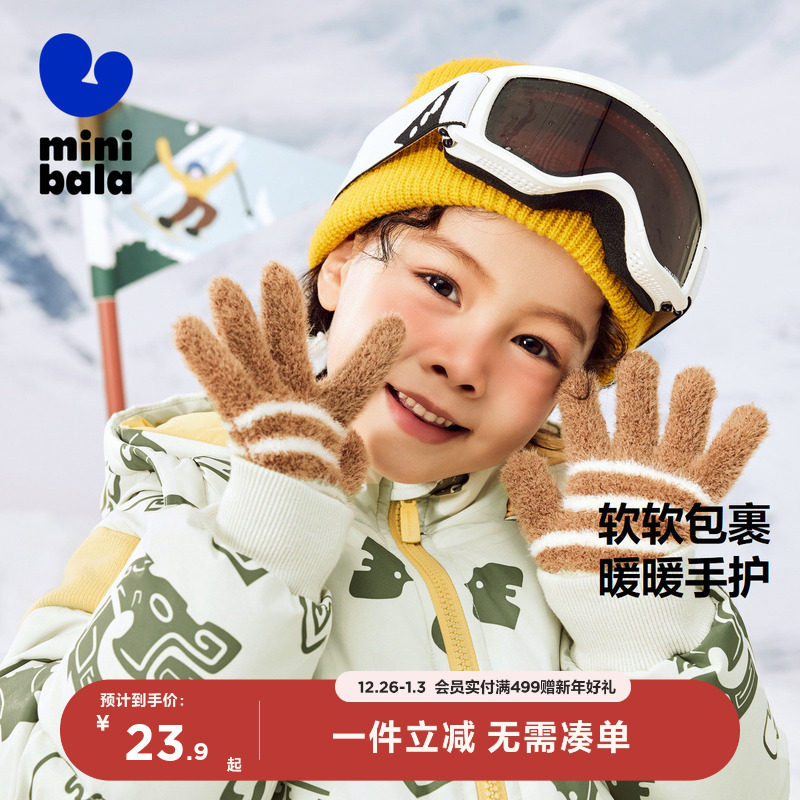 迷你巴拉巴拉男童女童保暖手套冬季新款男女童厚实毛线手套