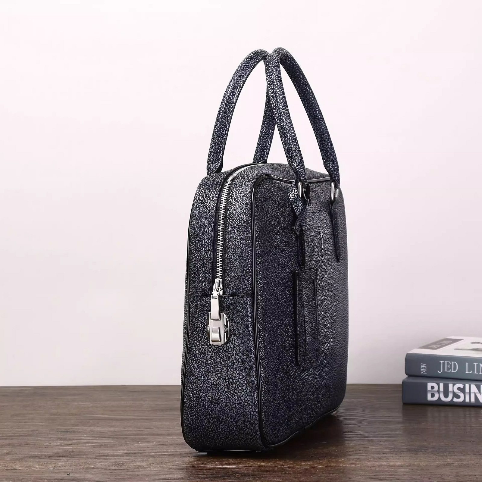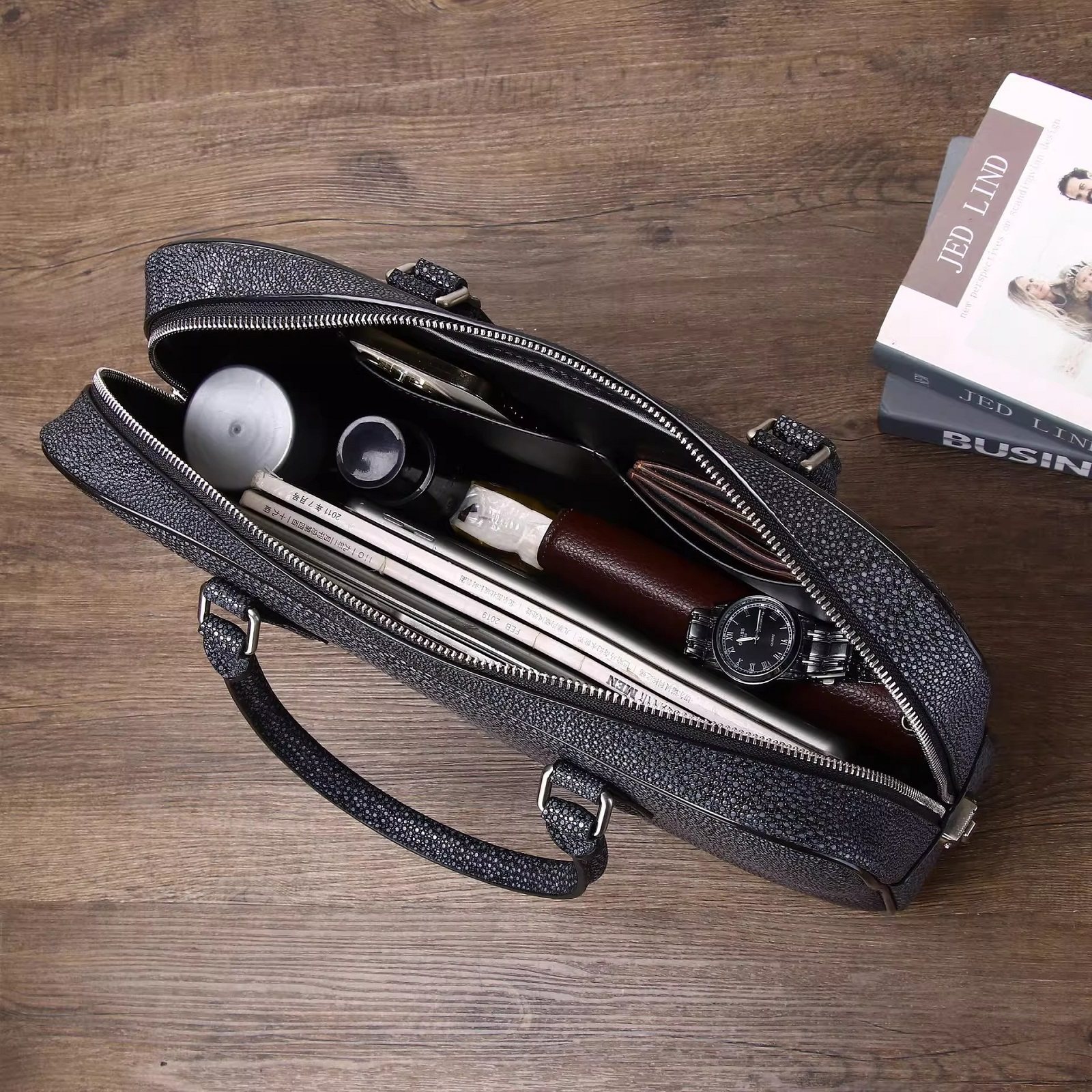 新款光面珍珠鱼纹男士公文包密码锁手提包商务男包文件包