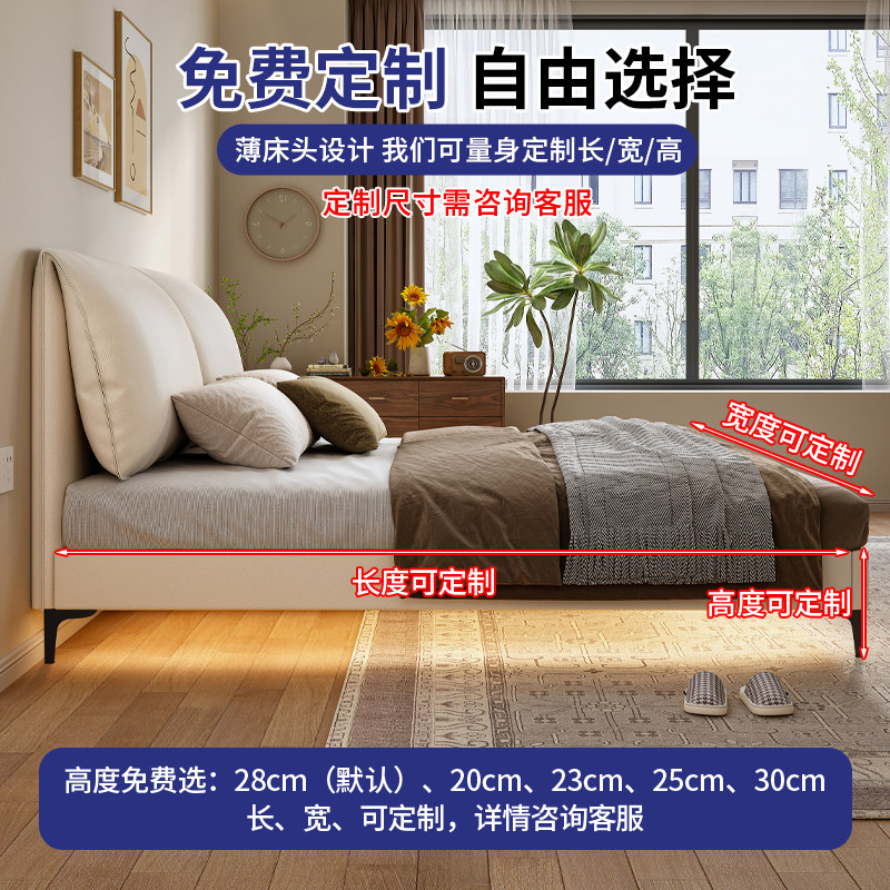 实木奶油风大象耳朵静音床薄床头1.5m齐边小户型主卧双人床可定制