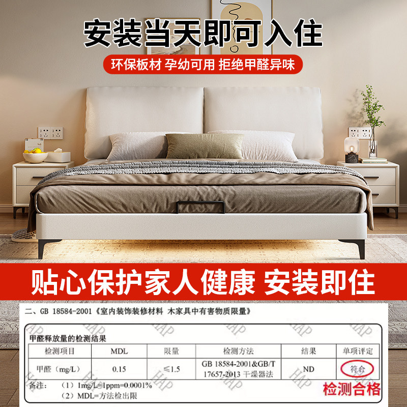 北欧实木床1.8软靠带夜灯双人床1.5m1.35现代简约小户型1.2储物床