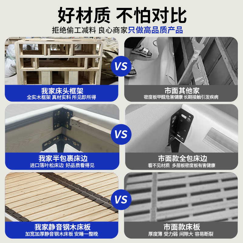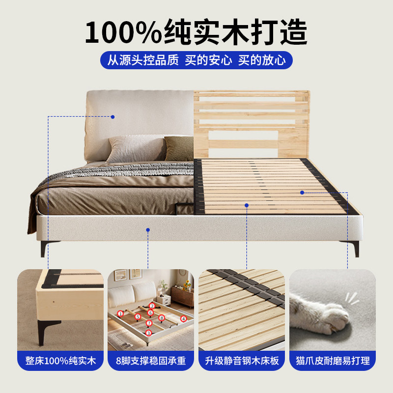 实木床1米8双人床家用主卧软包1.5米新款出租房储物单人床排骨架