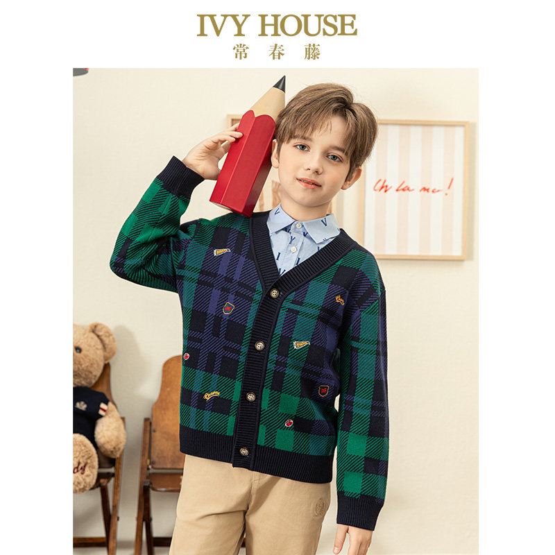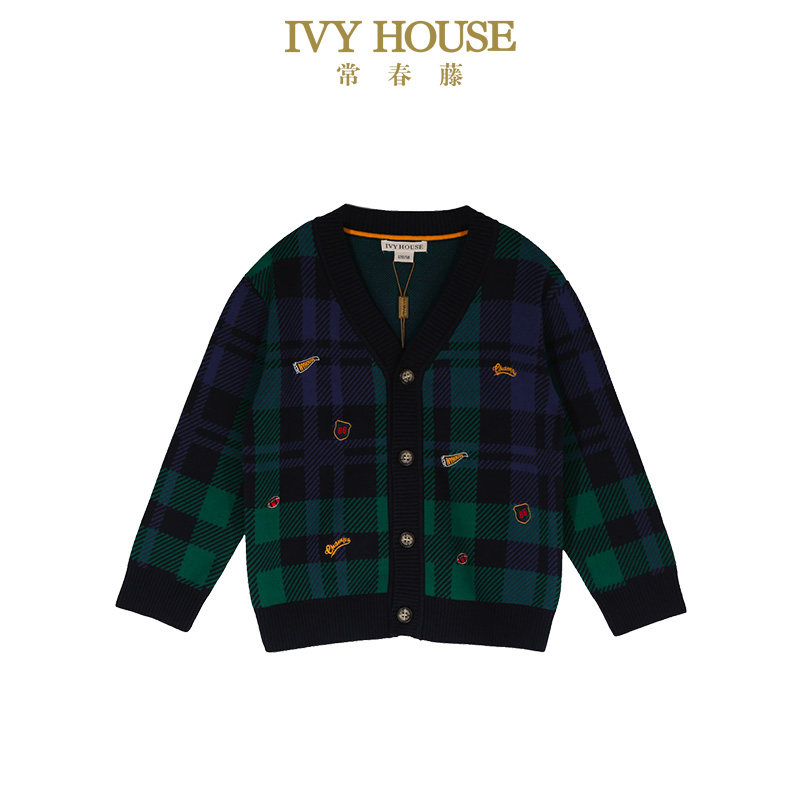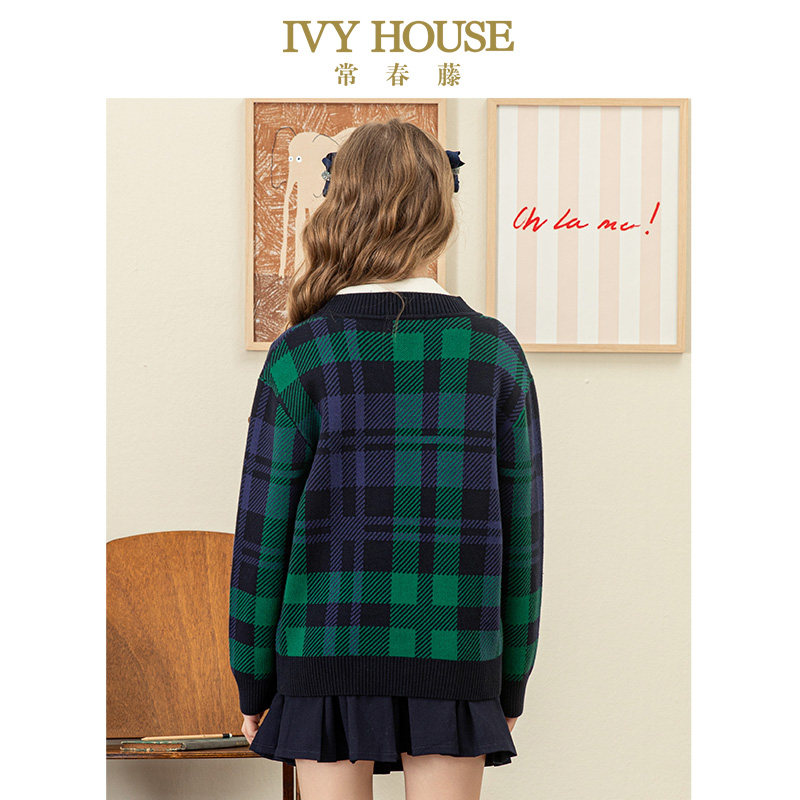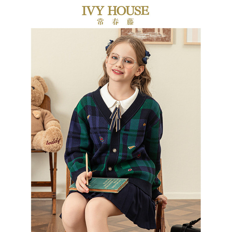 IVY HOUSE常春藤儿童装男女童秋季款 格子毛织开衫外套全棉亲子装