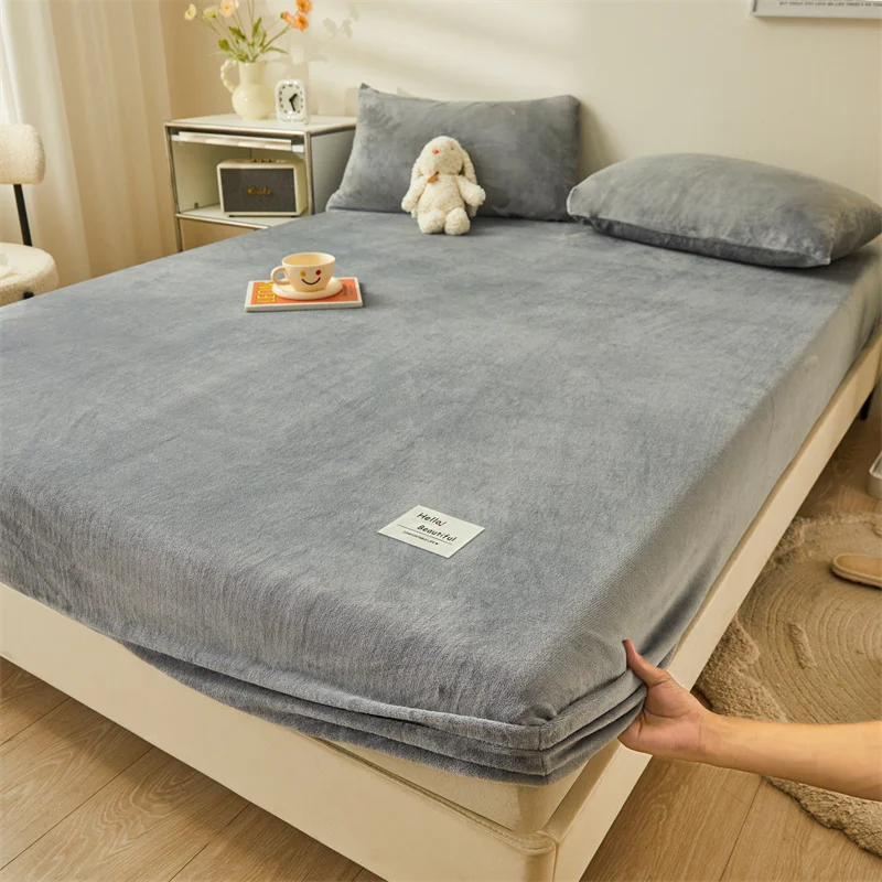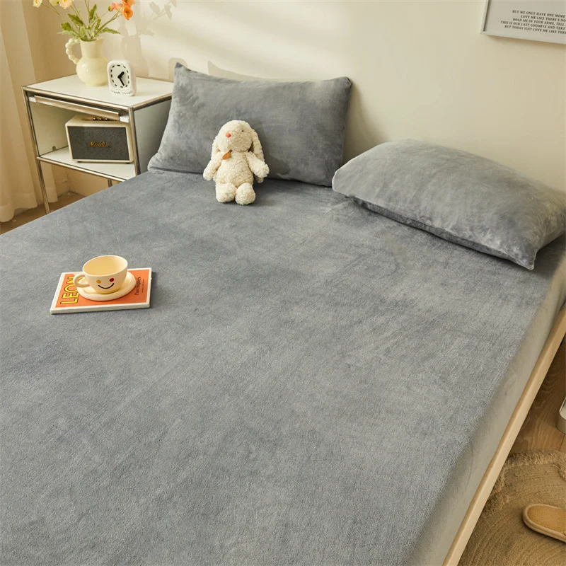 A类冬季牛奶绒加厚床笠法兰绒床罩套床垫保护套全包床单三件套