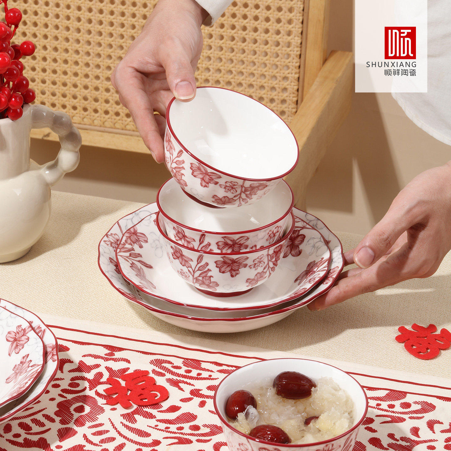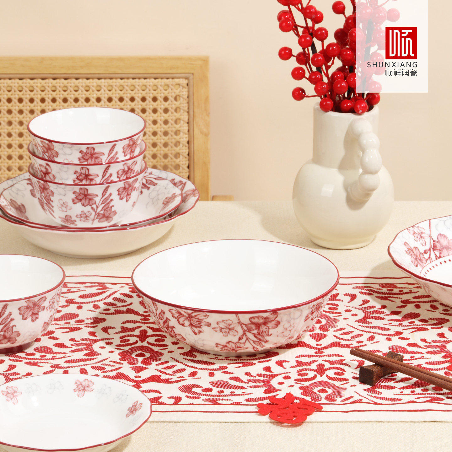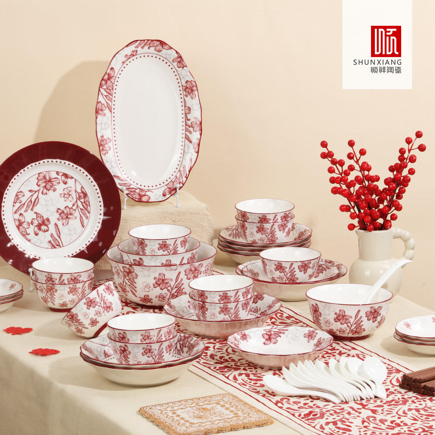 【林依轮直播间】顺祥高档碗碟餐具陶瓷新年红色碗盘乔迁新居精致