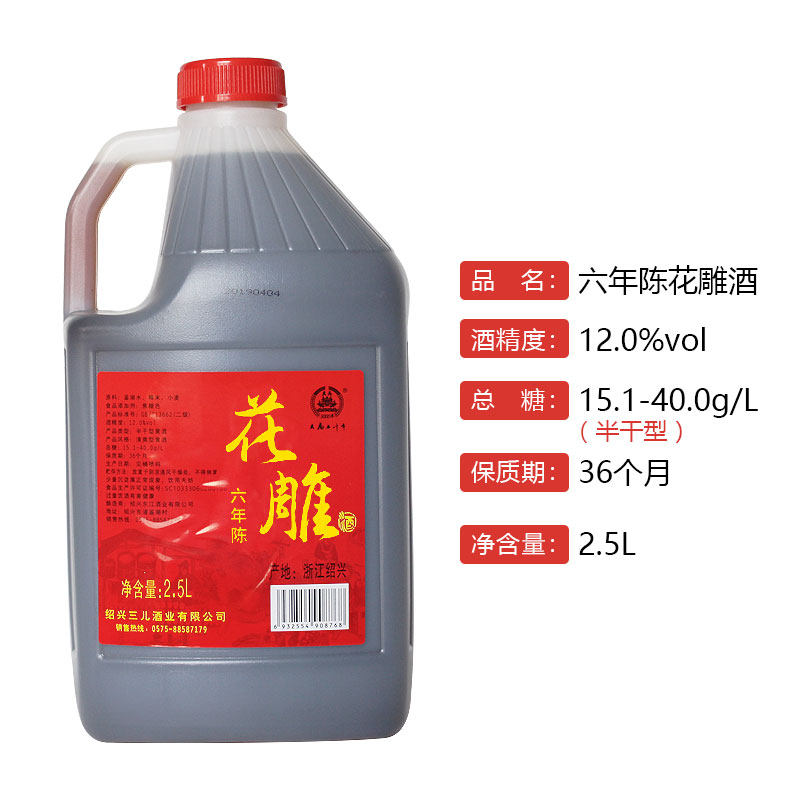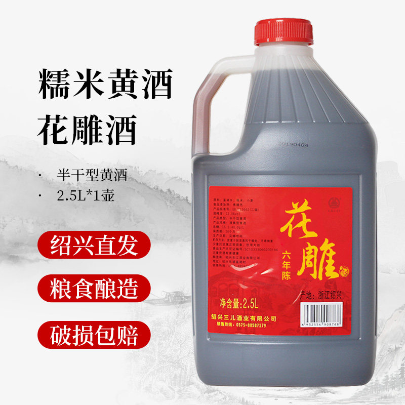花雕酒正宗绍兴产黄酒纯糯米2.5L桶装老酒做厨房料酒陈酿酒业自饮