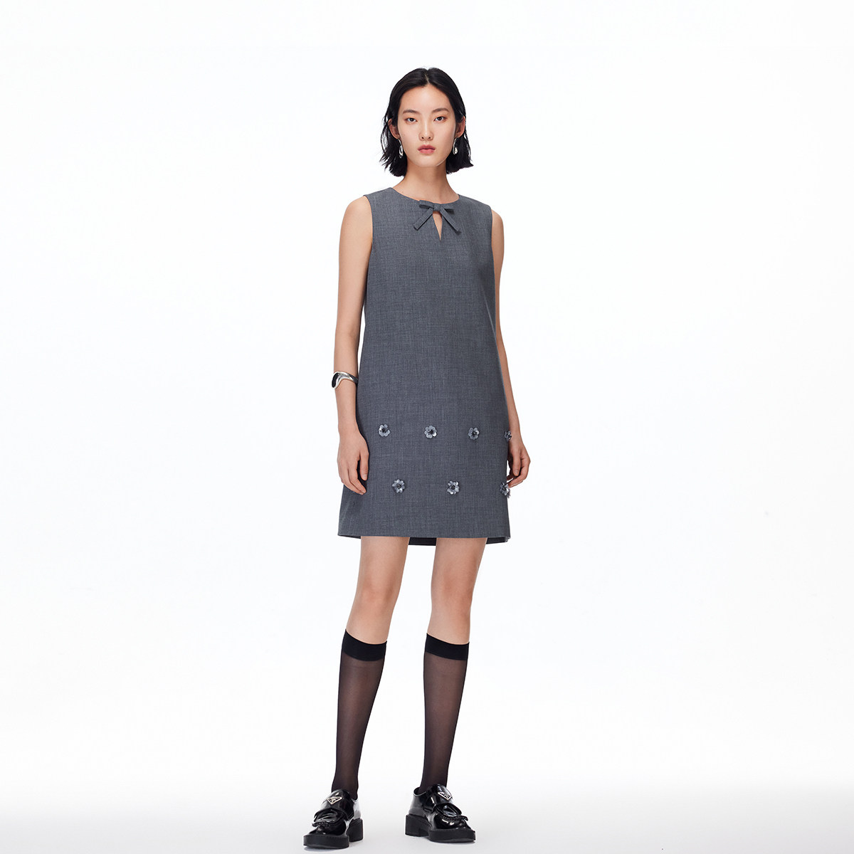 Vero Moda连衣裙2025秋季新款蝴蝶结镂空花朵钉珠短裙32537A027