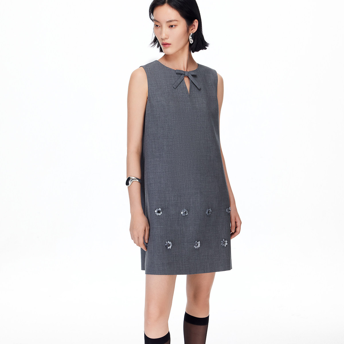 蝴蝶结镂空领口 甜美俏皮;花朵钉珠装饰
