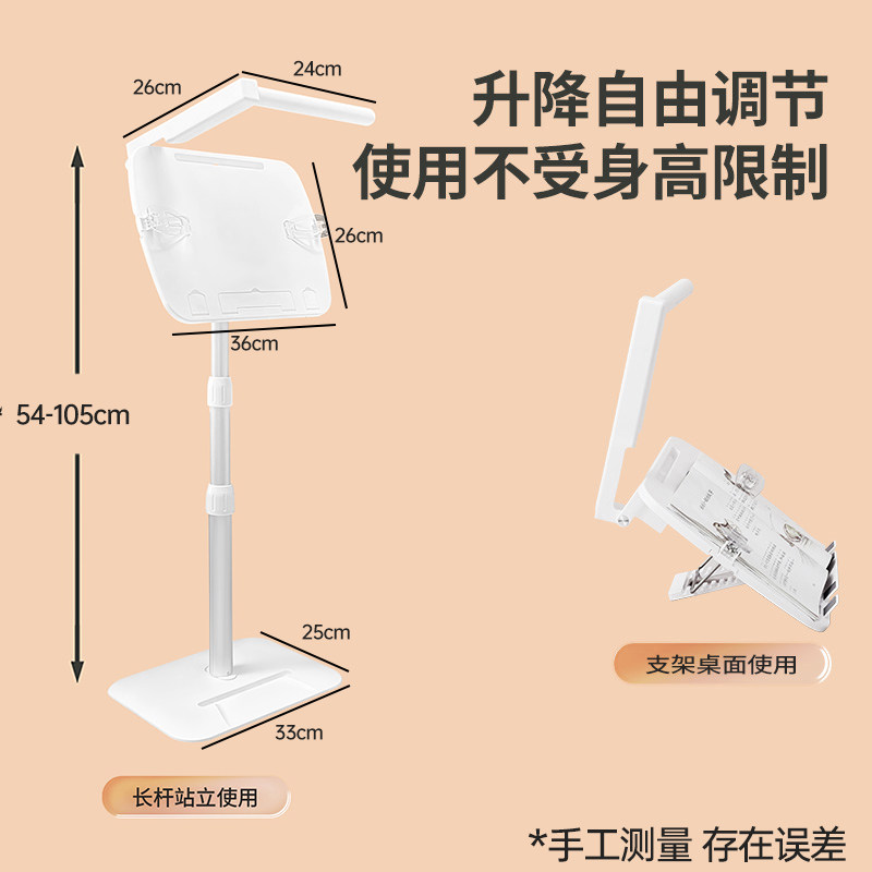 阅读架带灯可升降落地读书架大号儿童小书桌床上看书神器3档灯光桌面学习多功能读书支架伸缩宝宝看绘本书立