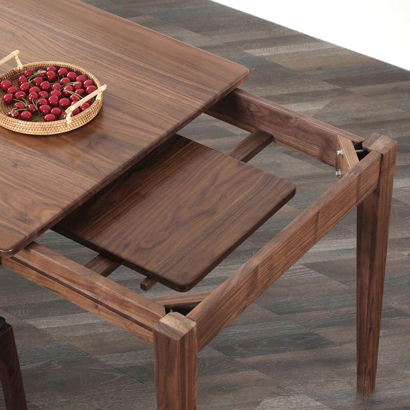 北欧日式黑胡桃木设计可伸缩餐桌现代简约实木原木小户型简易饭桌